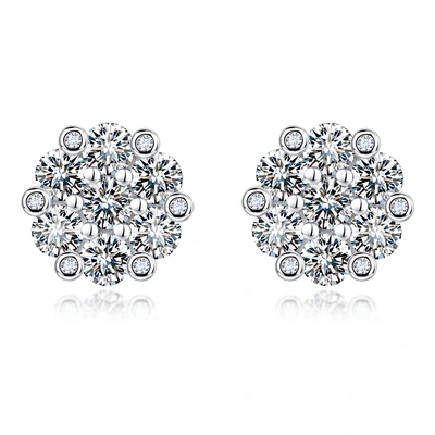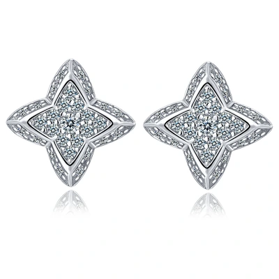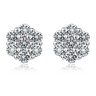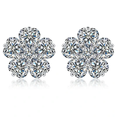 Wholesale 925 Silver Moissanite Floral Stud Earrings, Classic Blossom Flower Design, Factory Direct In Stock Elegant Jewelry for Boutique Retail