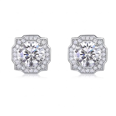 Wholesale 925 Silver Micro-Pavé Moissanite Stud Earrings, Premium Western Fashion Design, Factory Direct Understated Luxury Sophisticated Jewelry for Boutique Retail