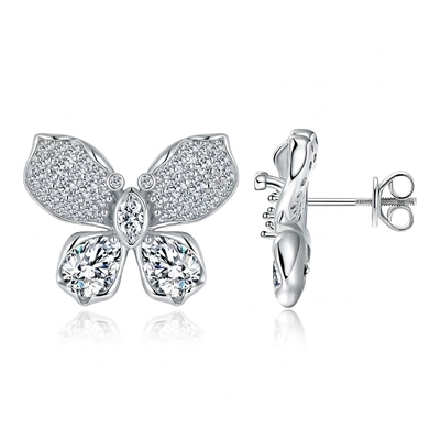 Wholesale 925 Silver D Color Moissanite Butterfly Stud Earrings, Luxury Pave Fully Paved Nature-Inspired Design, Factory Direct Trending Viral Fashion Jewelry for Boutique Retail