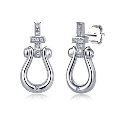 Wholesale 925 Silver Lucky Horseshoe Moissanite Stud Earrings, Classic Timeless Design, Factory Direct Understated Luxury Versatile Jewelry for Boutique Retail
