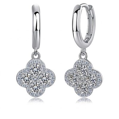 Wholesale 925 Silver Four-Leaf Clover Moissanite Hoop Earrings, Iced Out Lucky Clover Fully Paved Design, Factory Direct Understated Luxury Versatile Jewelry for Boutique Retail