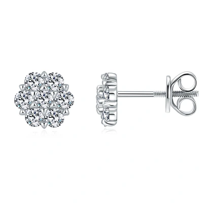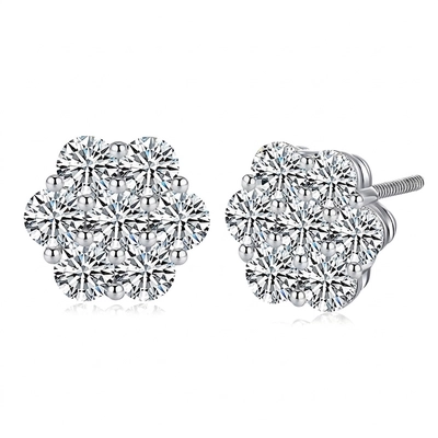 Wholesale 925 Silver Moissanite Floral Stud Earrings, Classic Blossom Flower Setting Design, Factory Direct Elegant Jewelry for Boutique Retail
