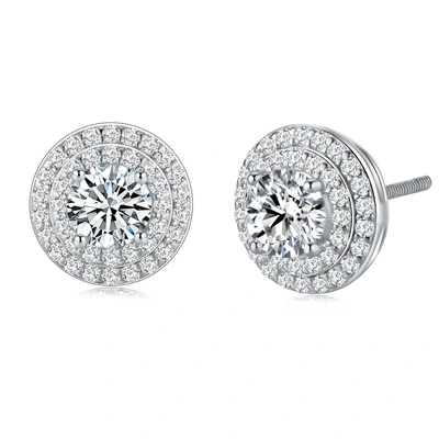 Wholesale 925 Silver 0.5 Carat Moissanite Double Circle Stud Earrings, Dazzling Sparkle Concentric Design, Factory Direct Elegant Jewelry for Boutique Retail