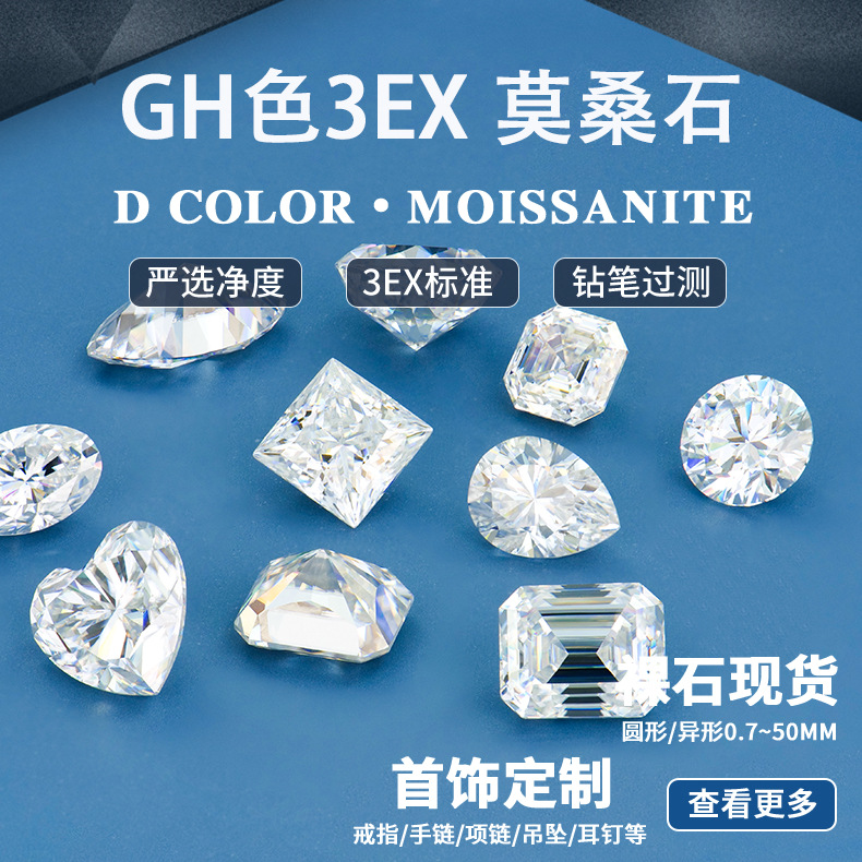 Our Moissanite diamonds are available in color grades D, EF, GH, and IJ, with a clarity of VVS1. We offer a comprehensive range of specifications. Our products hold a significant market share within China and are also exported to numerous countries and regions including the United States, Canada, France, Germany, Italy, and South Korea.