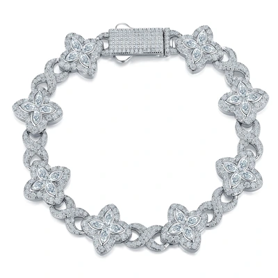 Wholesale 925 Silver Gold Tone Moissanite Floral Cuban Bracelet, Tarnish Resistant Blossom Pattern Design, Factory Direct Hip Hop Jewelry for Boutique Retail
