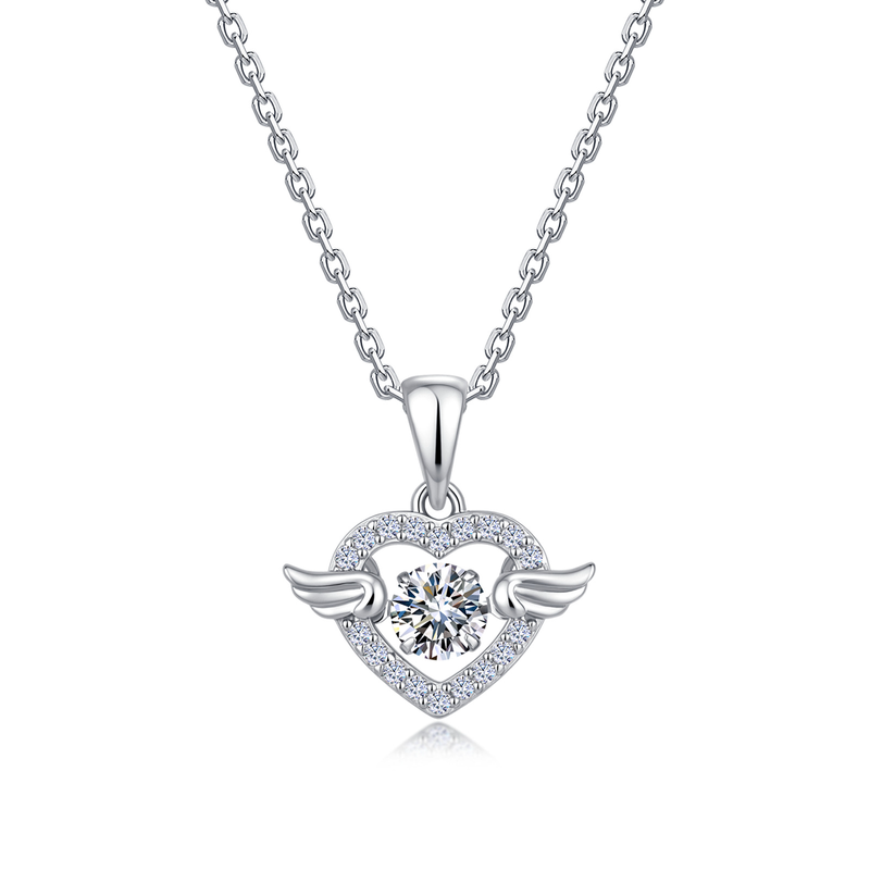Wholesale 925 Silver Moissanite Necklace, Heart with Wings Pendant Design, Factory Direct Elegant Jewelry for Boutique & Retail