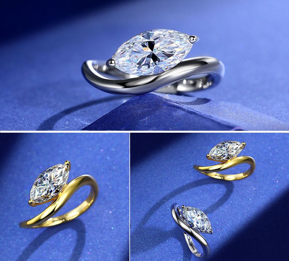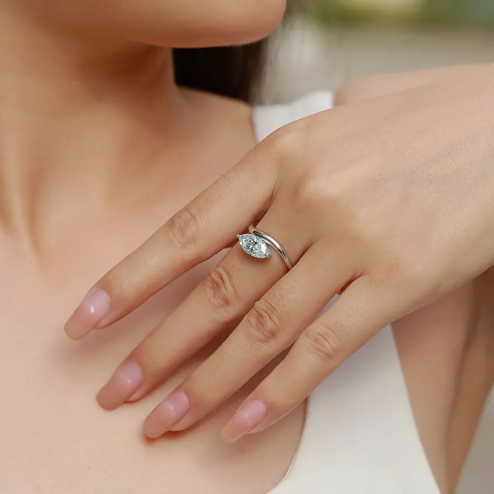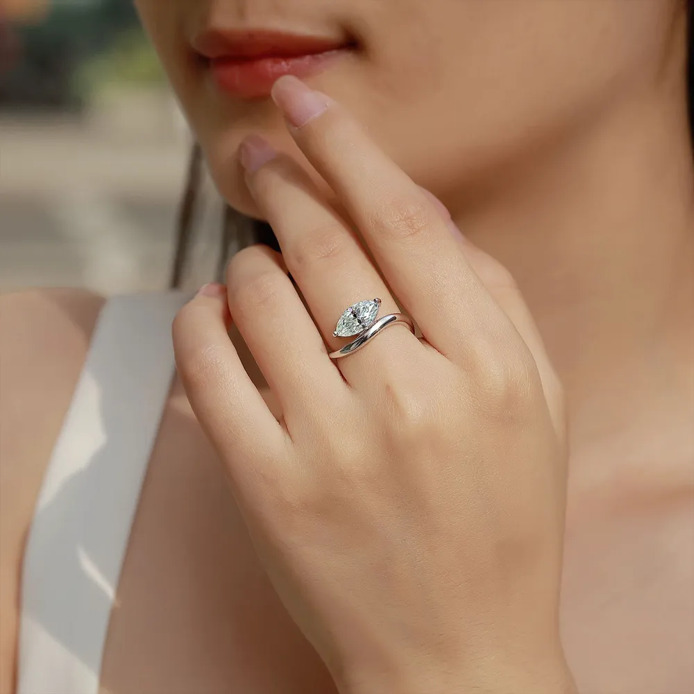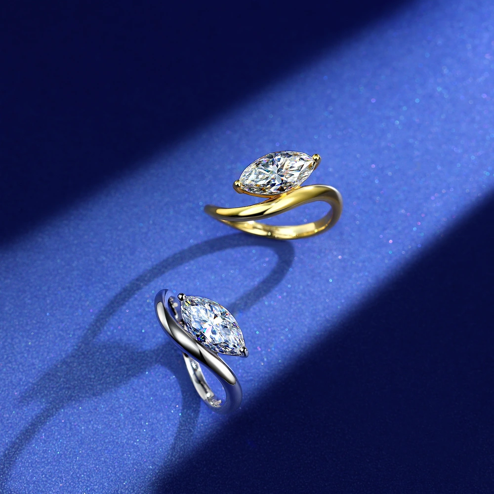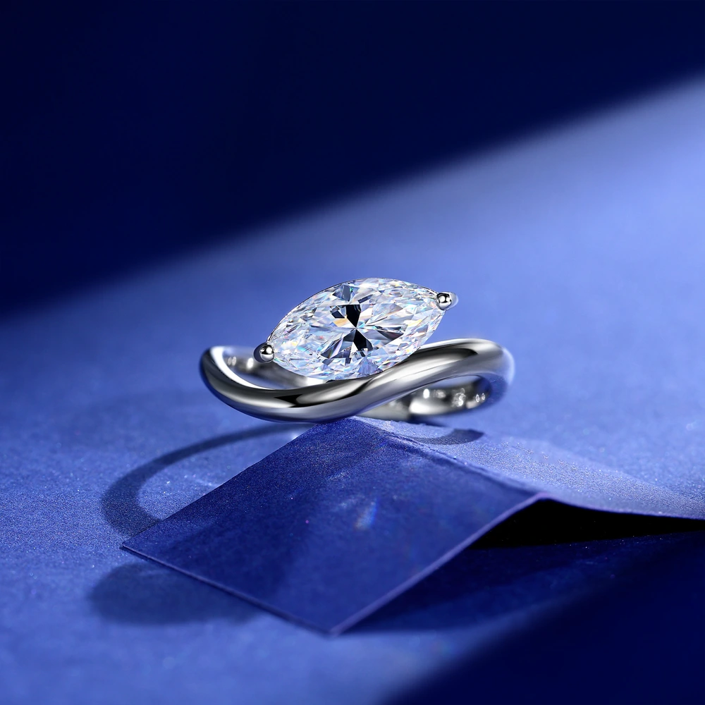 Wholesale 925 Silver 2 Carat D Color Marquise Moissanite Ring, Twisted Shank Delicate Band Design, Factory Direct Premium Engagement Jewelry for Boutique Retail