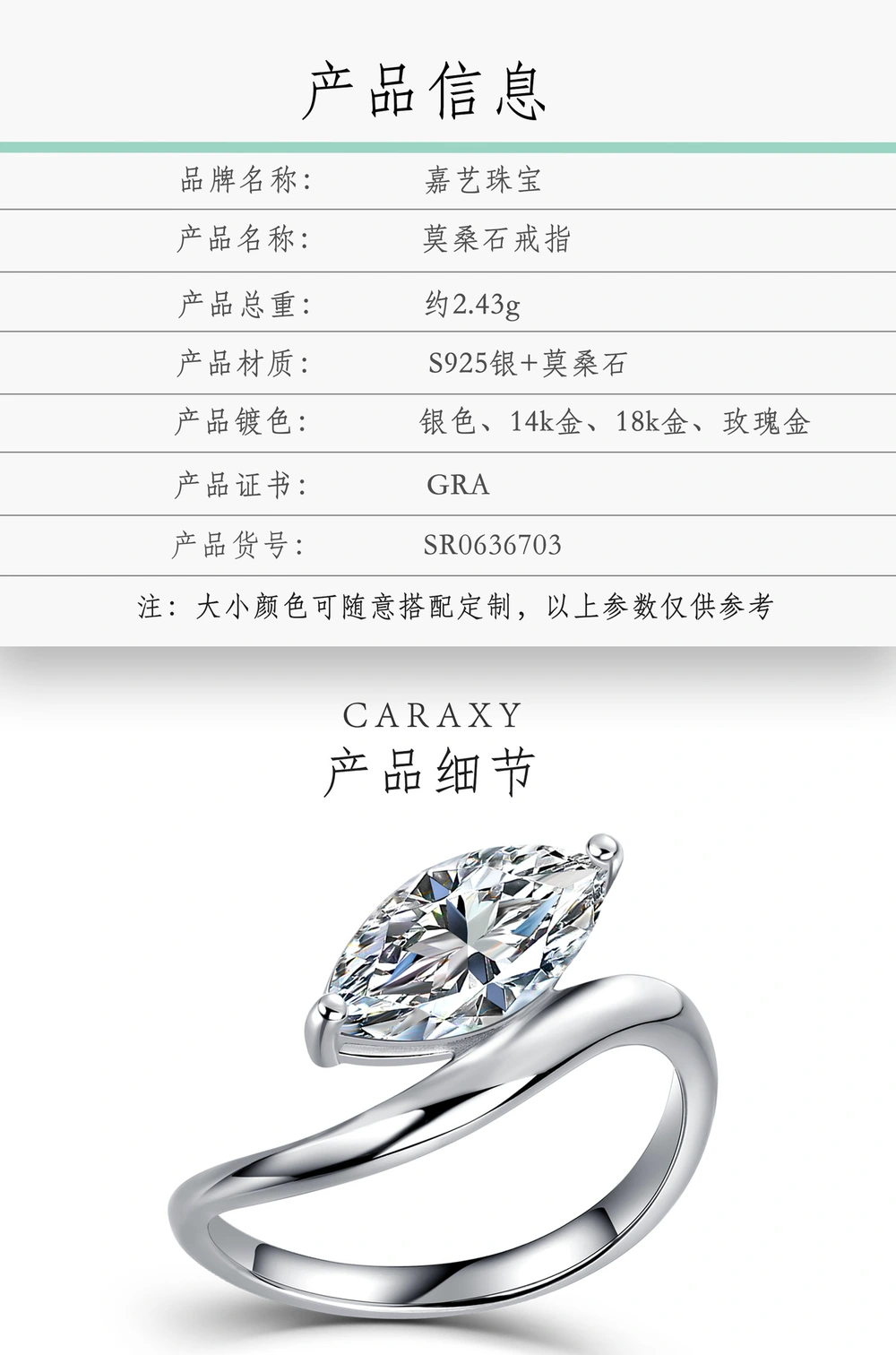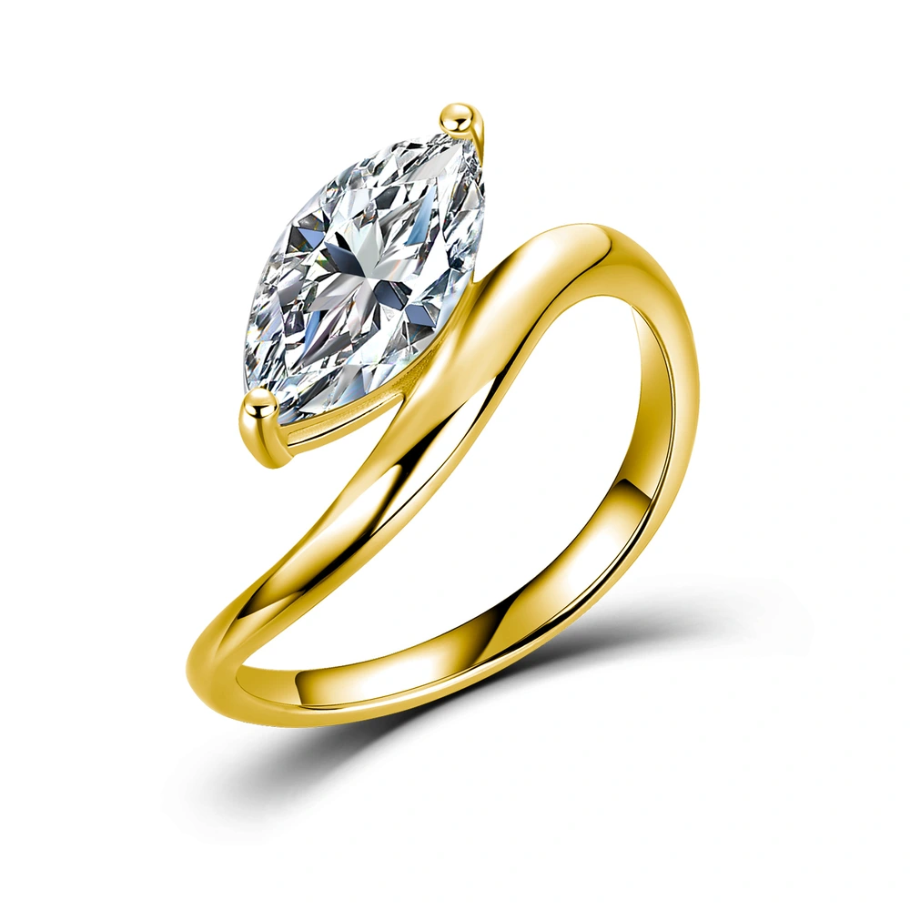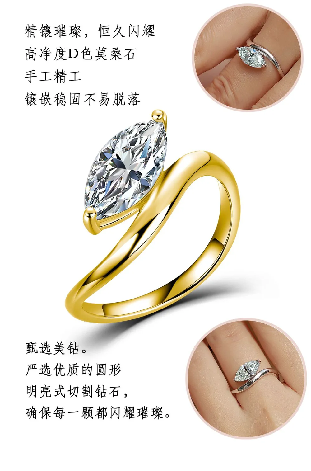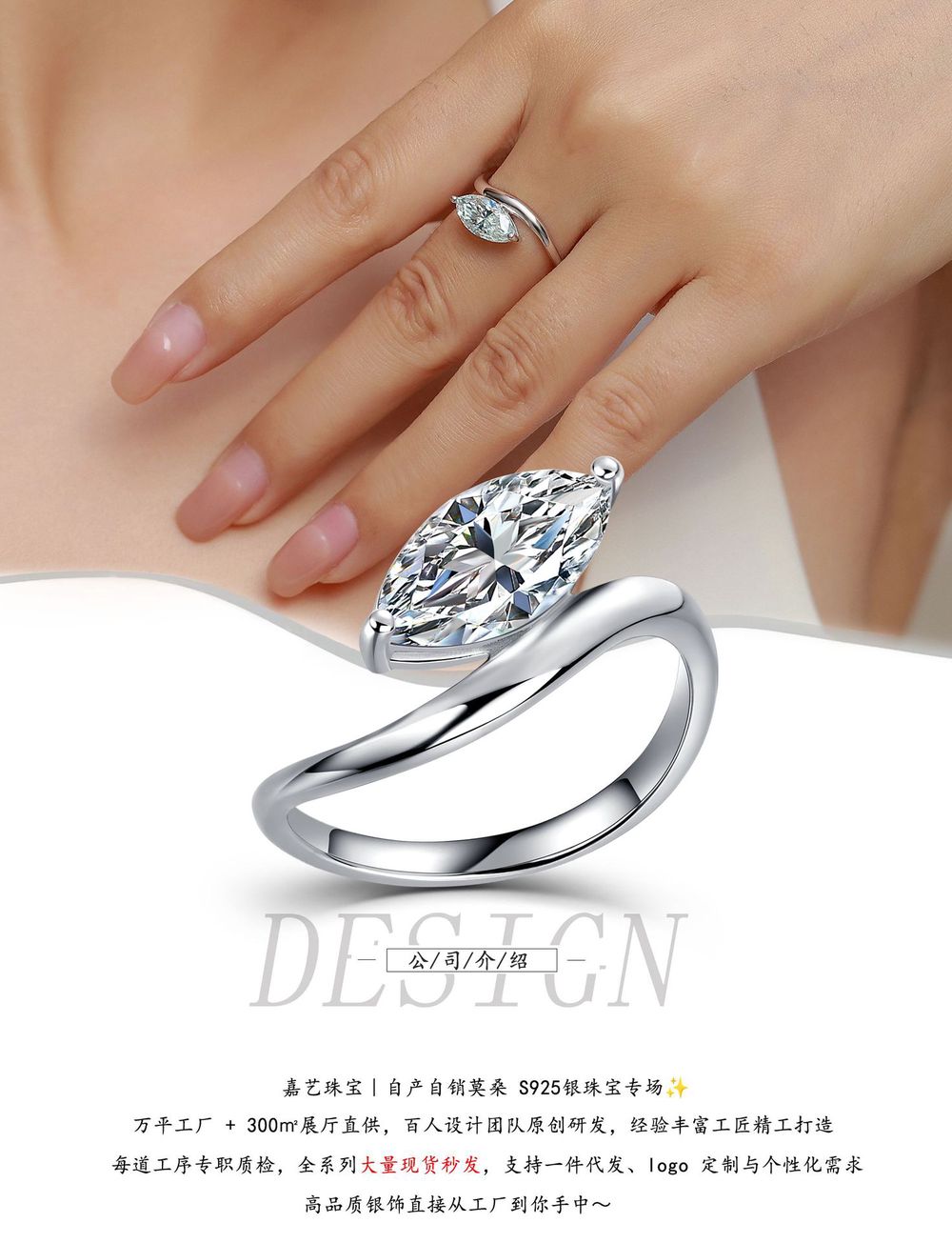 Wholesale 925 Silver 2 Carat D Color Marquise Moissanite Ring, Twisted Shank Delicate Band Design, Factory Direct Premium Engagement Jewelry for Boutique Retail