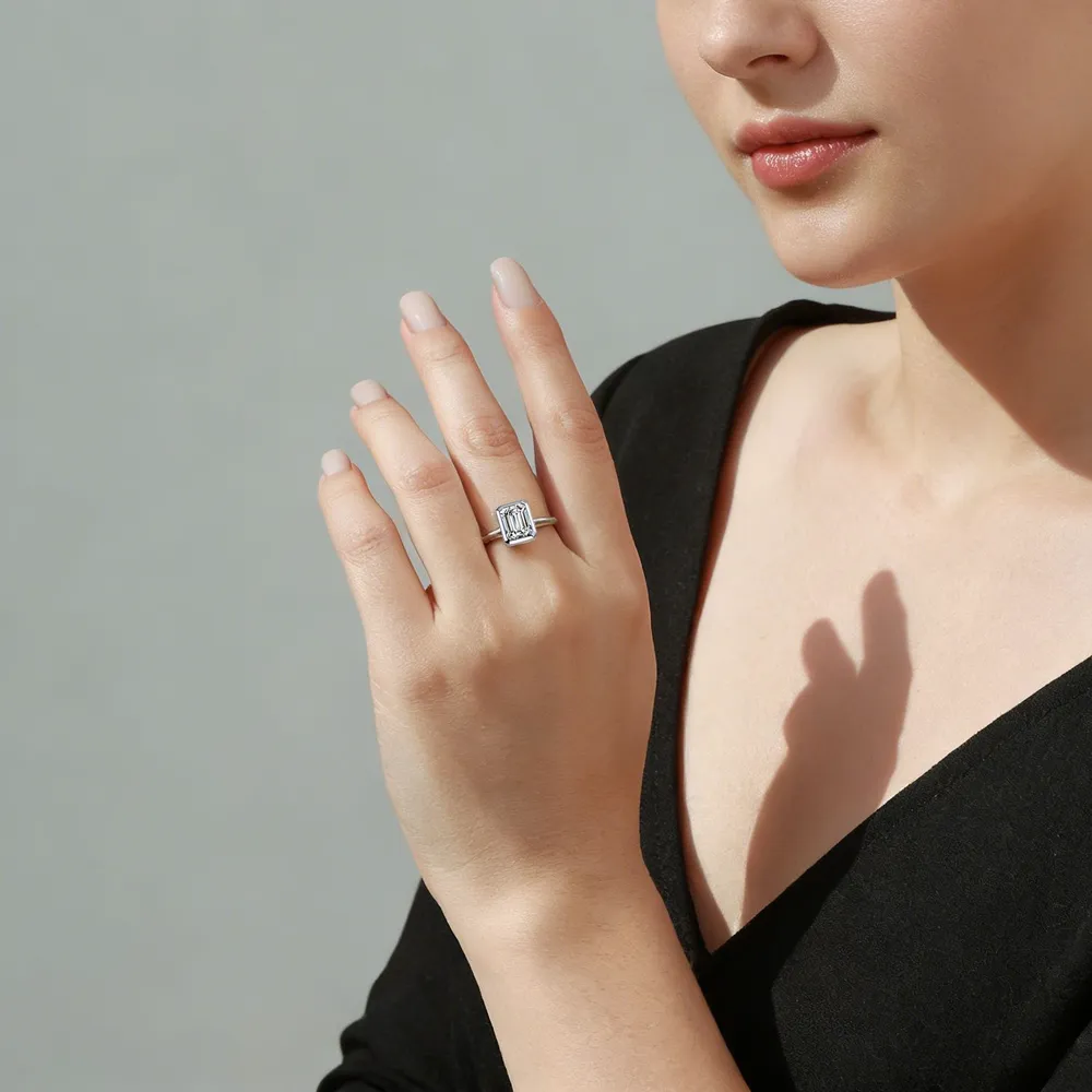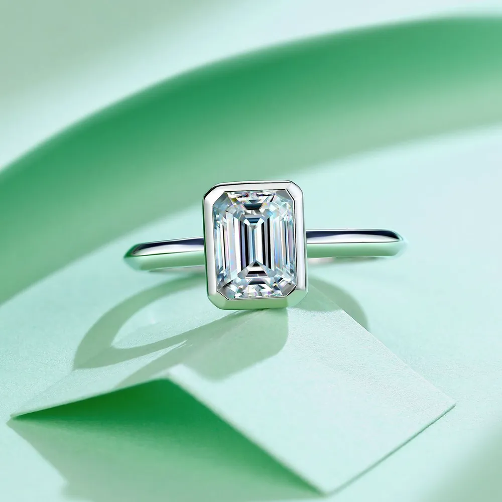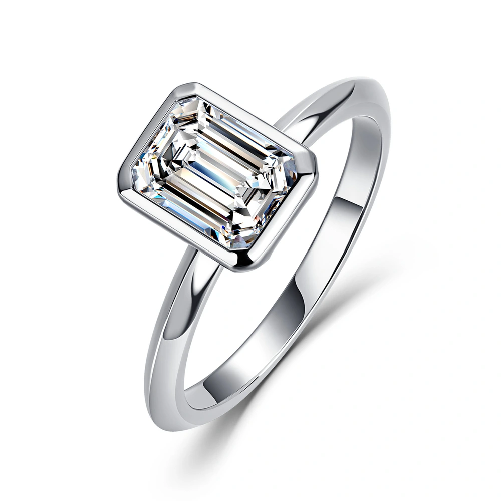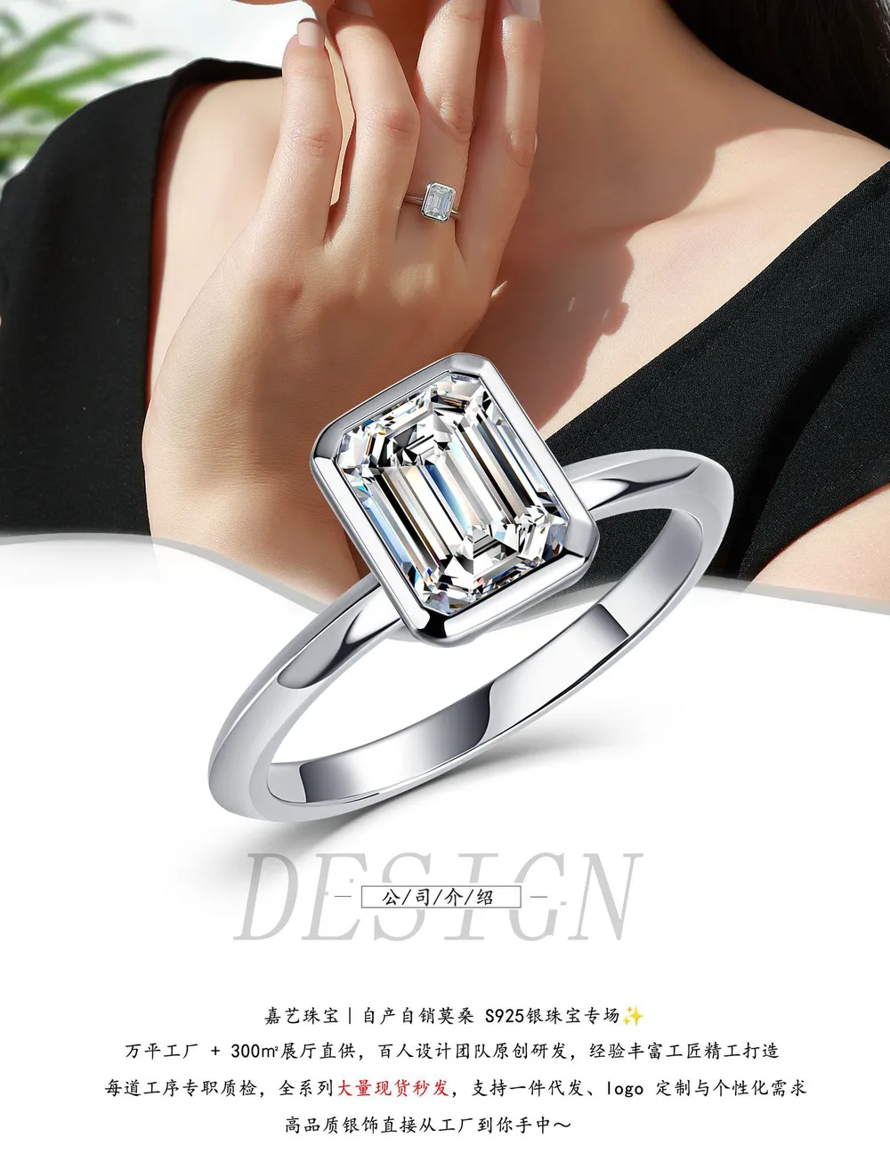Wholesale 925 Silver 2ct Emerald Cut Moissanite Ring, Iced Out Hip Hop Statement Design, Factory Direct Large Carat Street Luxury Jewelry for Boutique Retail