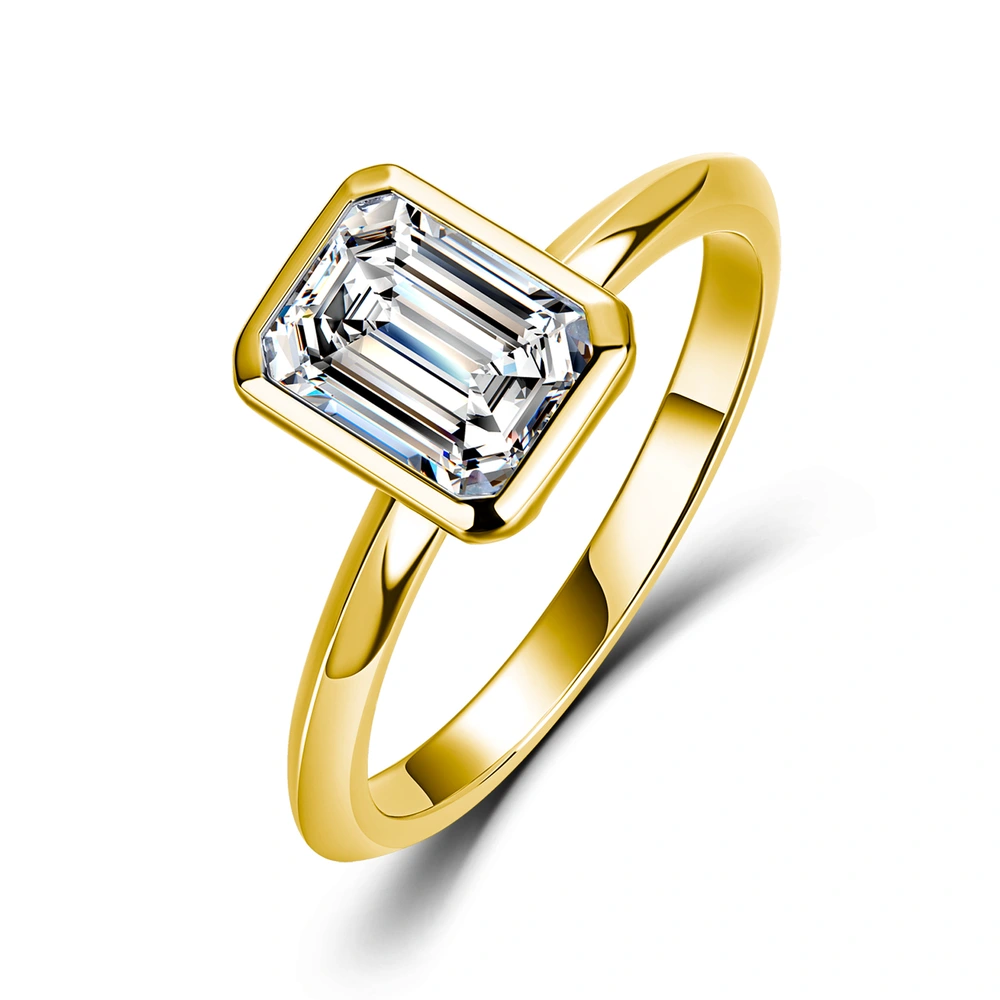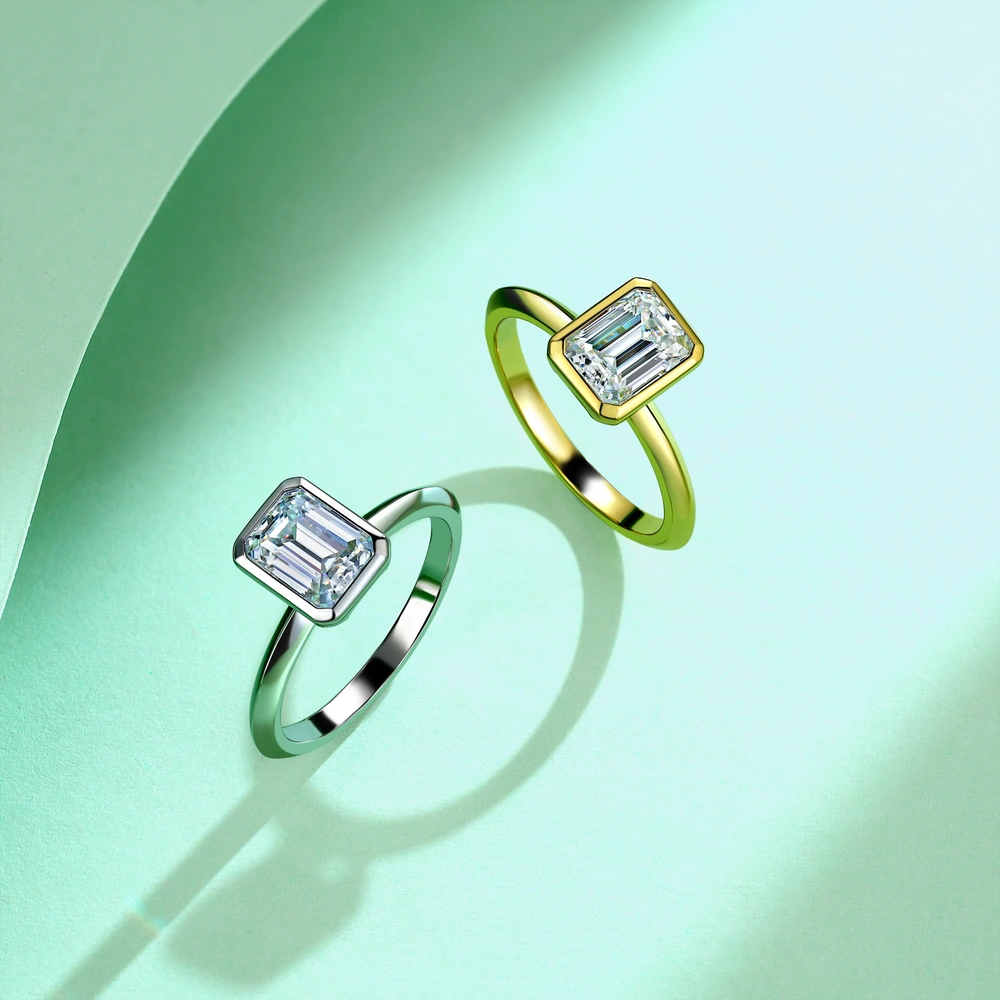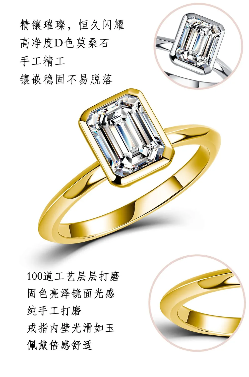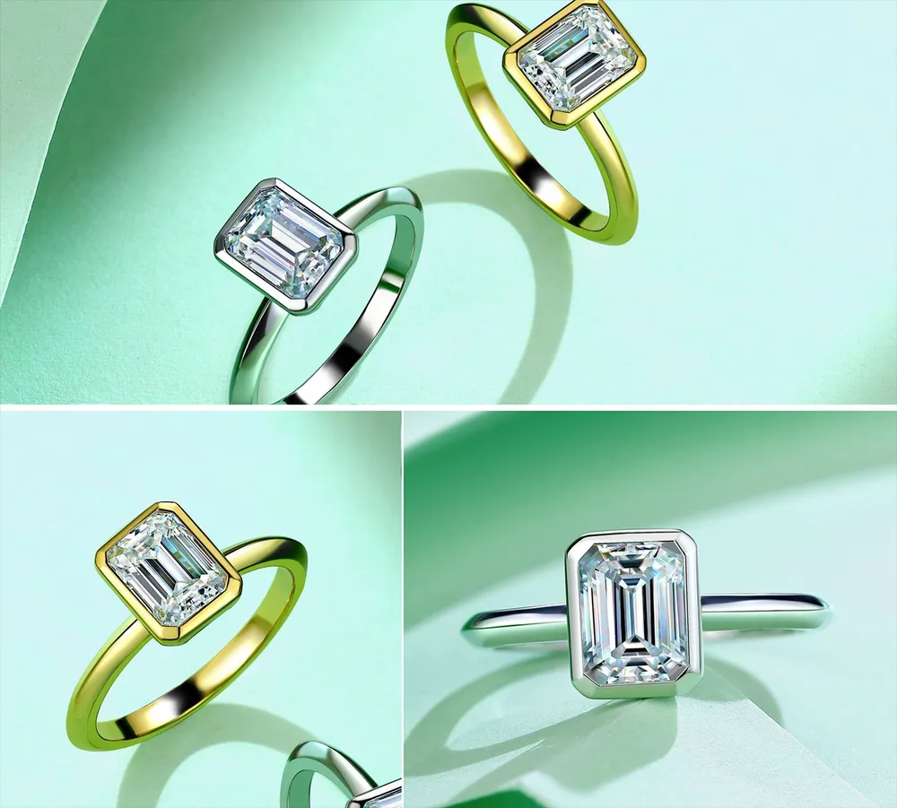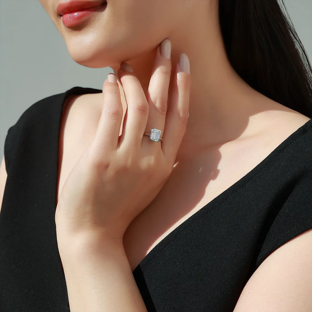 Wholesale 925 Silver 2ct Emerald Cut Moissanite Ring, Iced Out Hip Hop Statement Design, Factory Direct Large Carat Street Luxury Jewelry for Boutique Retail