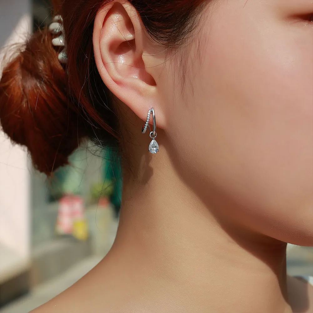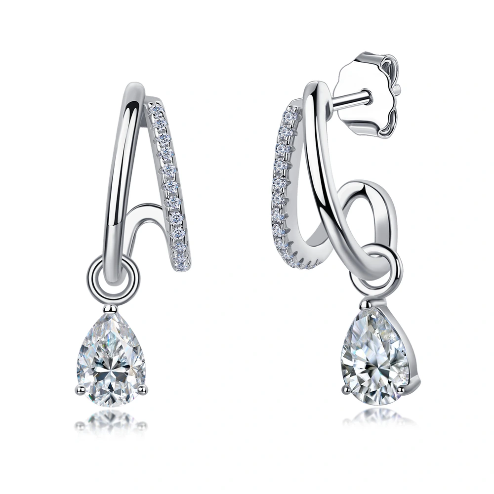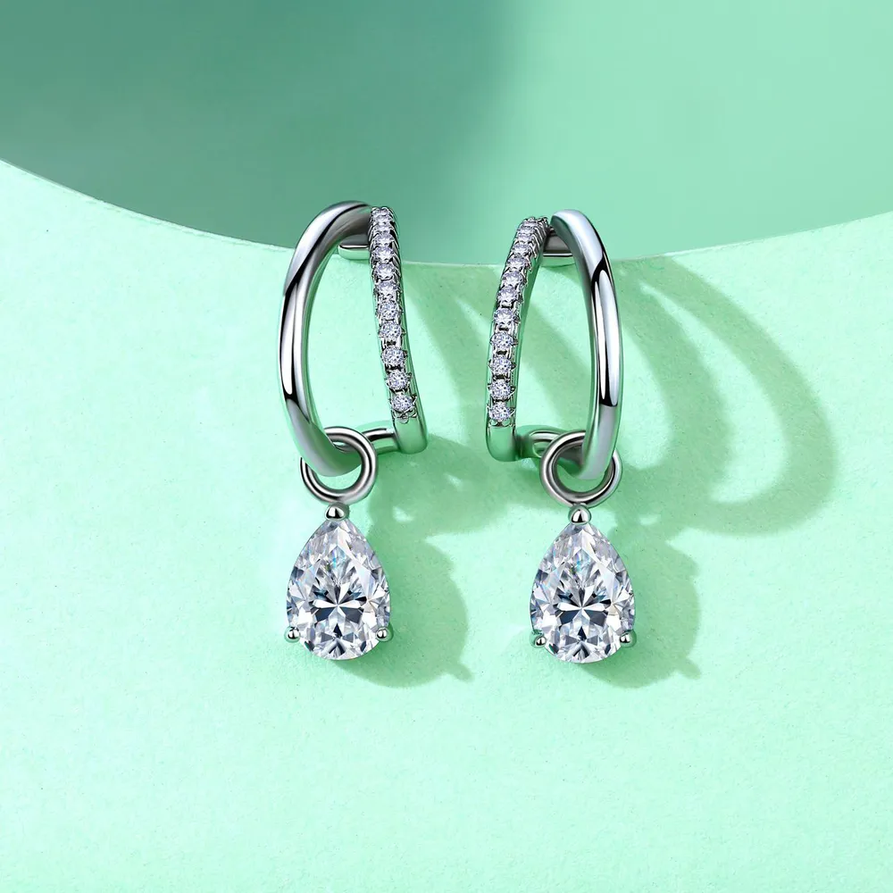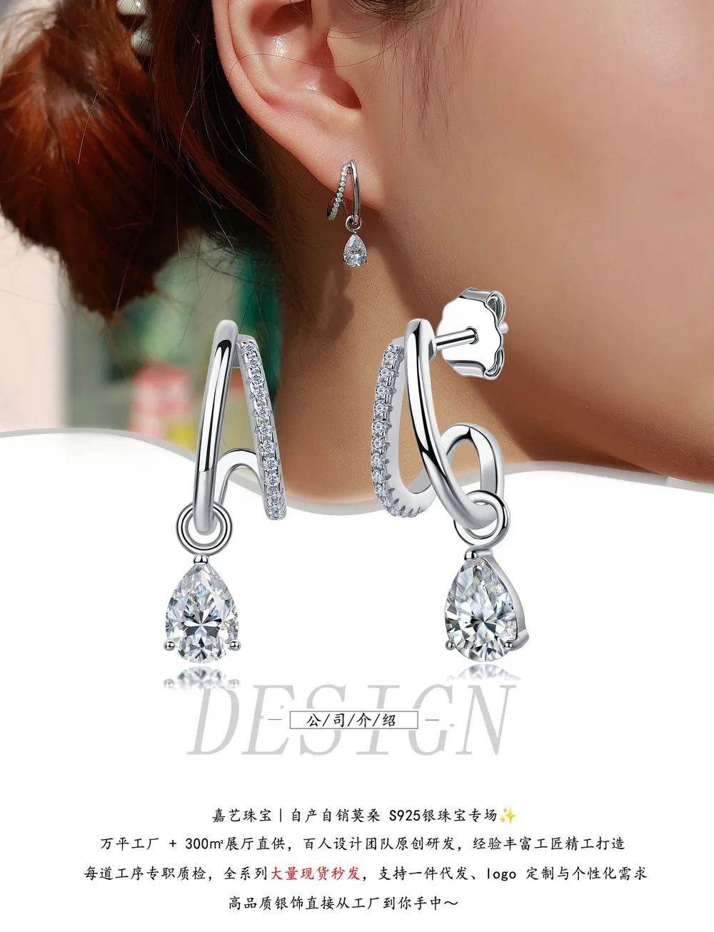 Wholesale 925 Silver D Color Moissanite Teardrop Earrings, Elegant Pear Cut Drop Design, Factory Direct Romantic Understated Luxury Jewelry for Boutique Retail