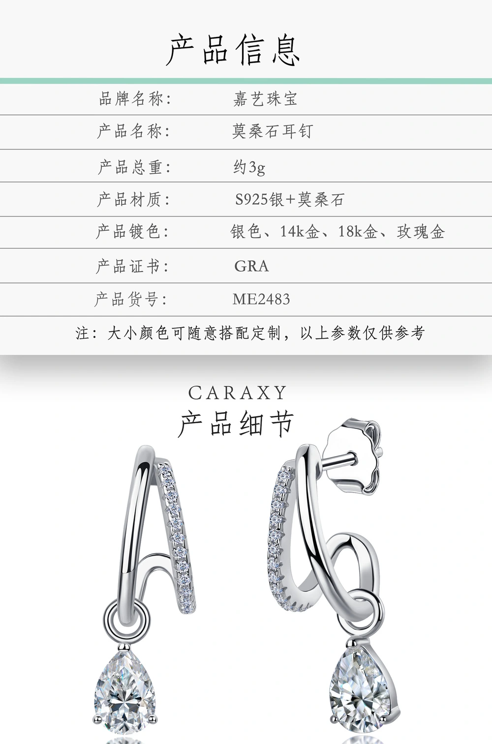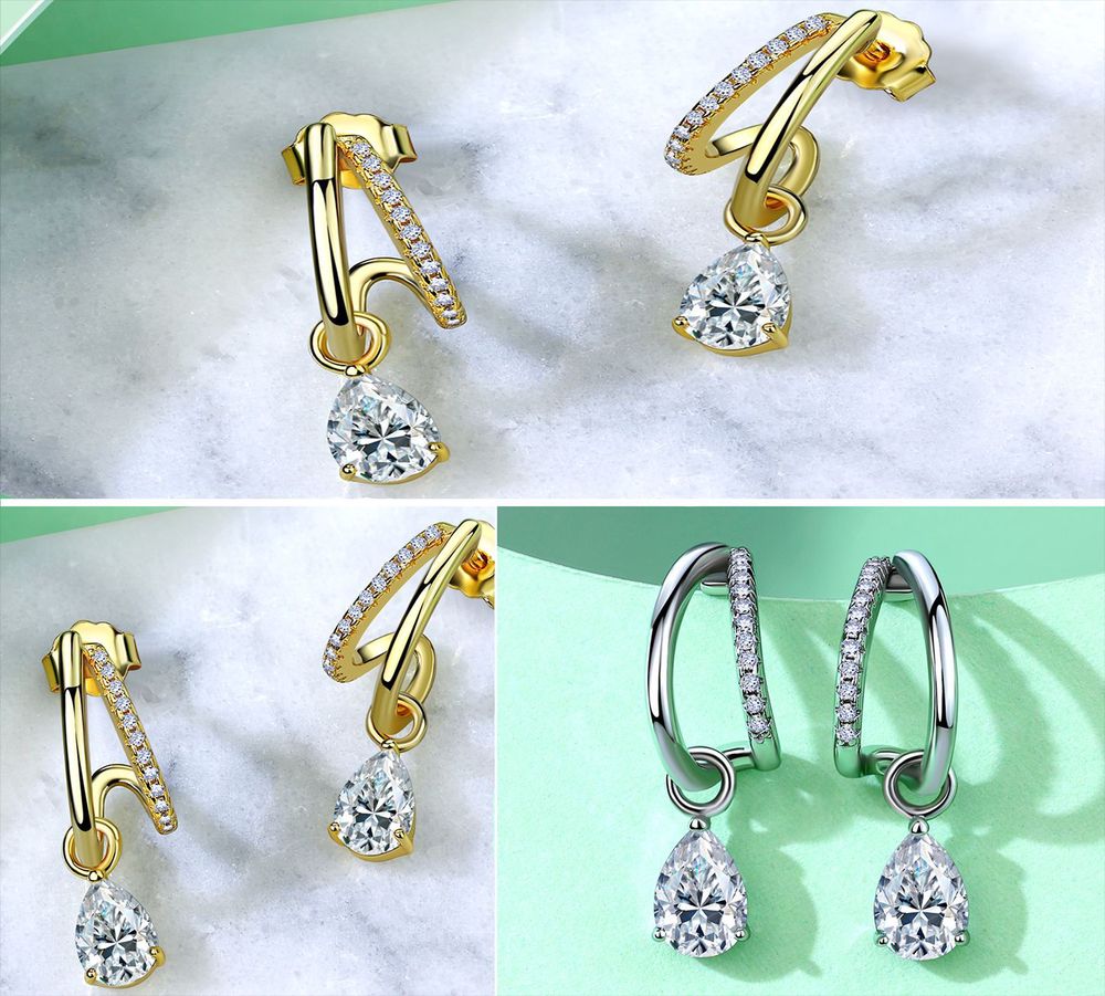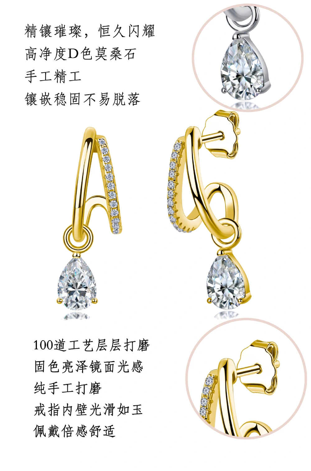 Wholesale 925 Silver D Color Moissanite Teardrop Earrings, Elegant Pear Cut Drop Design, Factory Direct Romantic Understated Luxury Jewelry for Boutique Retail