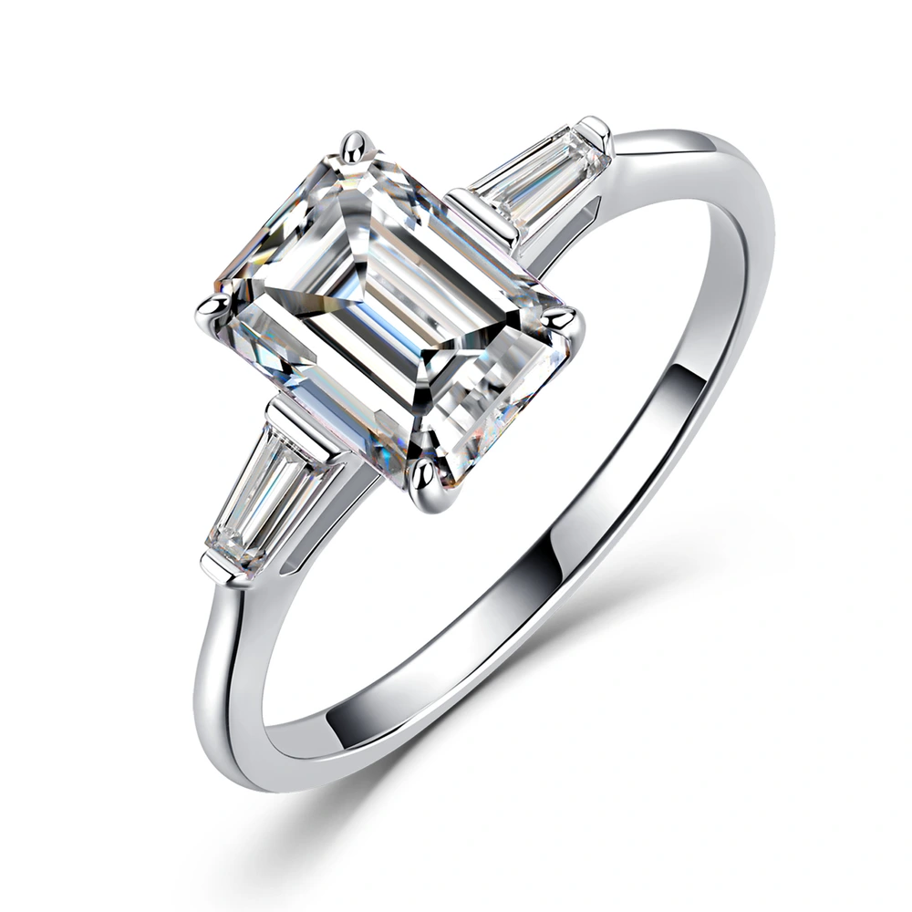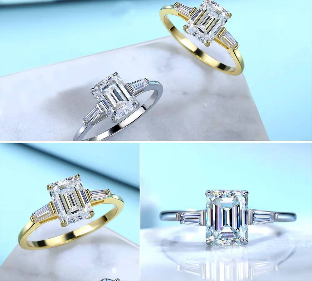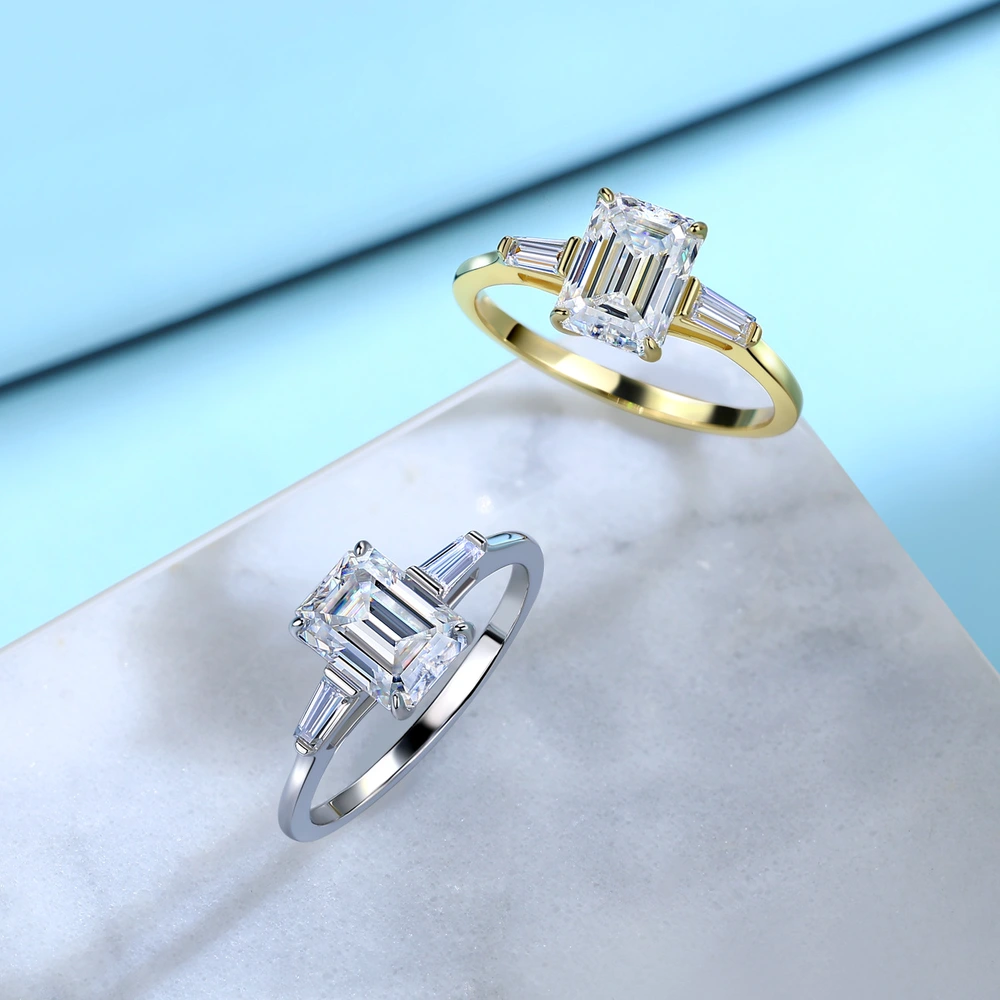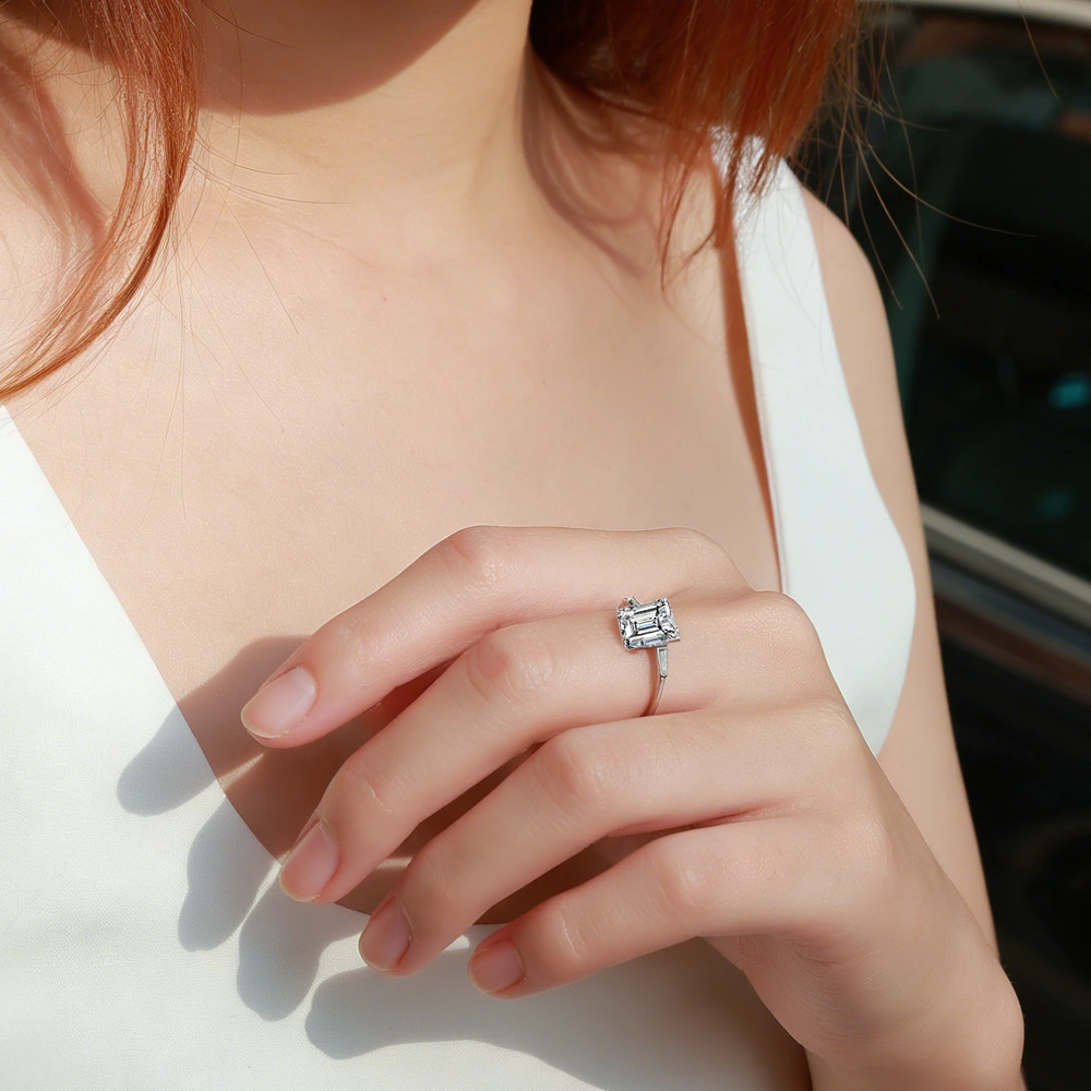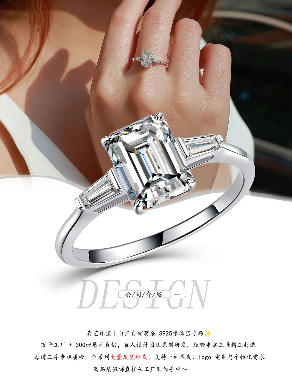 Wholesale 925 Silver Emerald Cut Moissanite Ring, Large Carat Hip Hop Iced Out Engagement Design, Factory Direct Understated Luxury Statement Jewelry for Boutique Retail