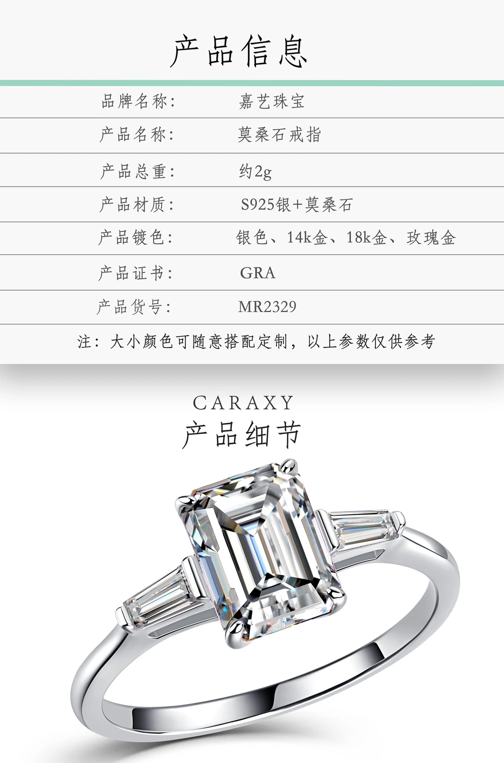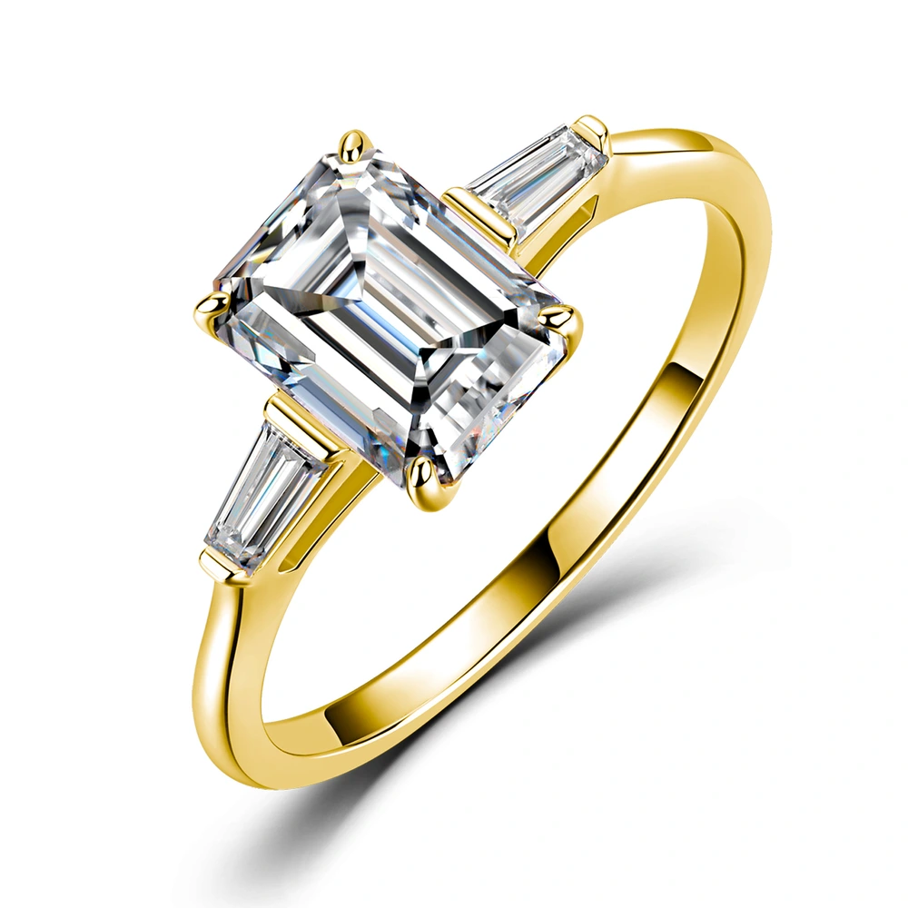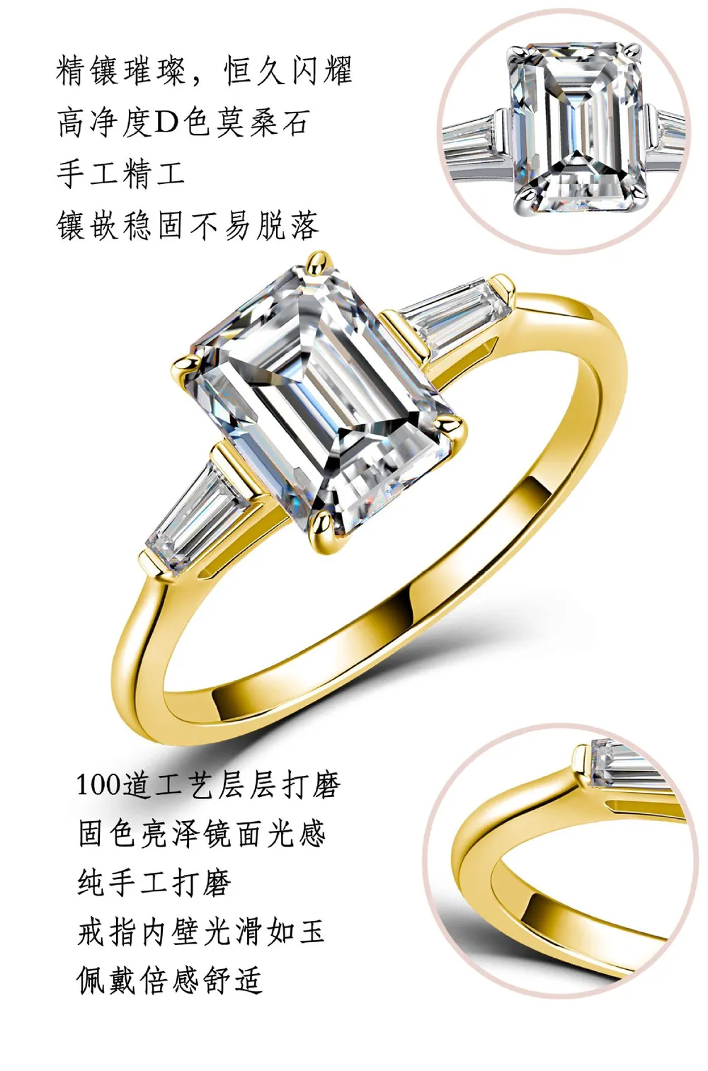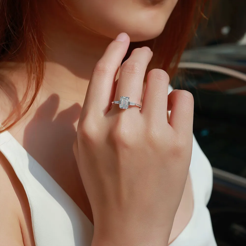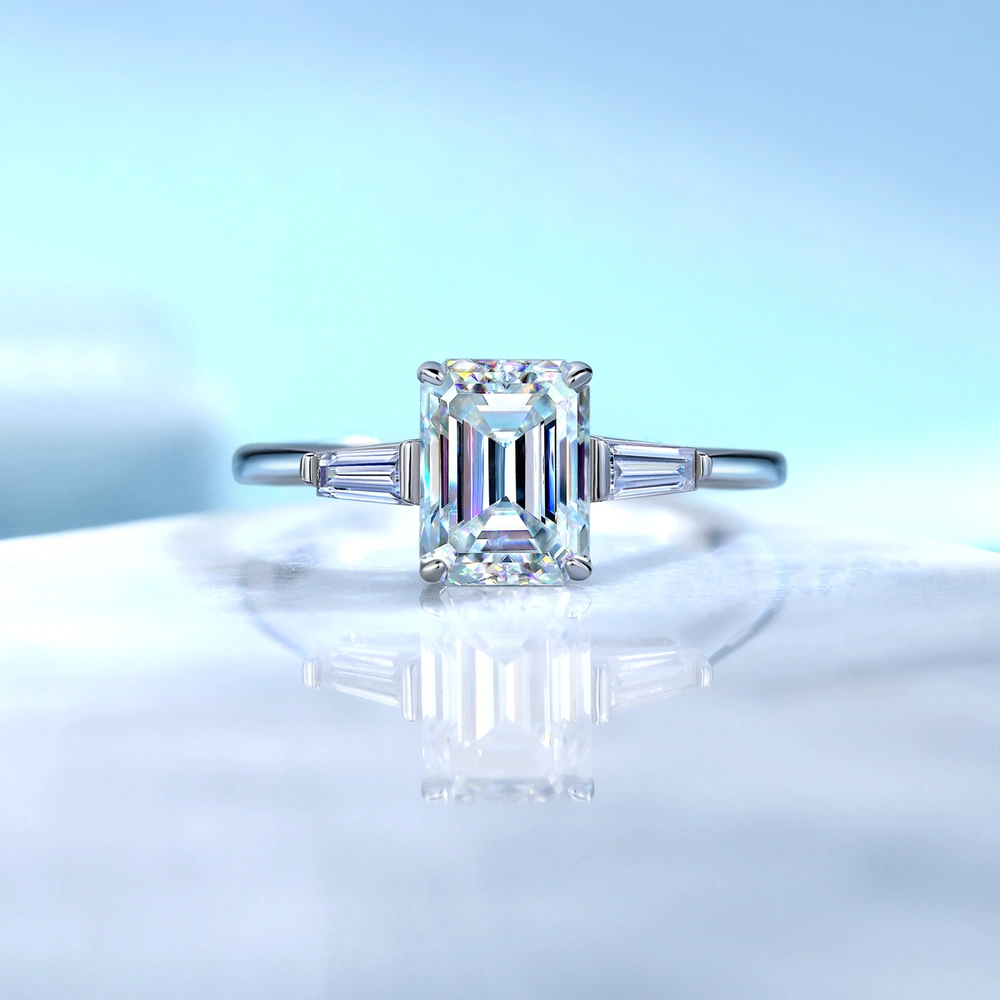 Wholesale 925 Silver Emerald Cut Moissanite Ring, Large Carat Hip Hop Iced Out Engagement Design, Factory Direct Understated Luxury Statement Jewelry for Boutique Retail