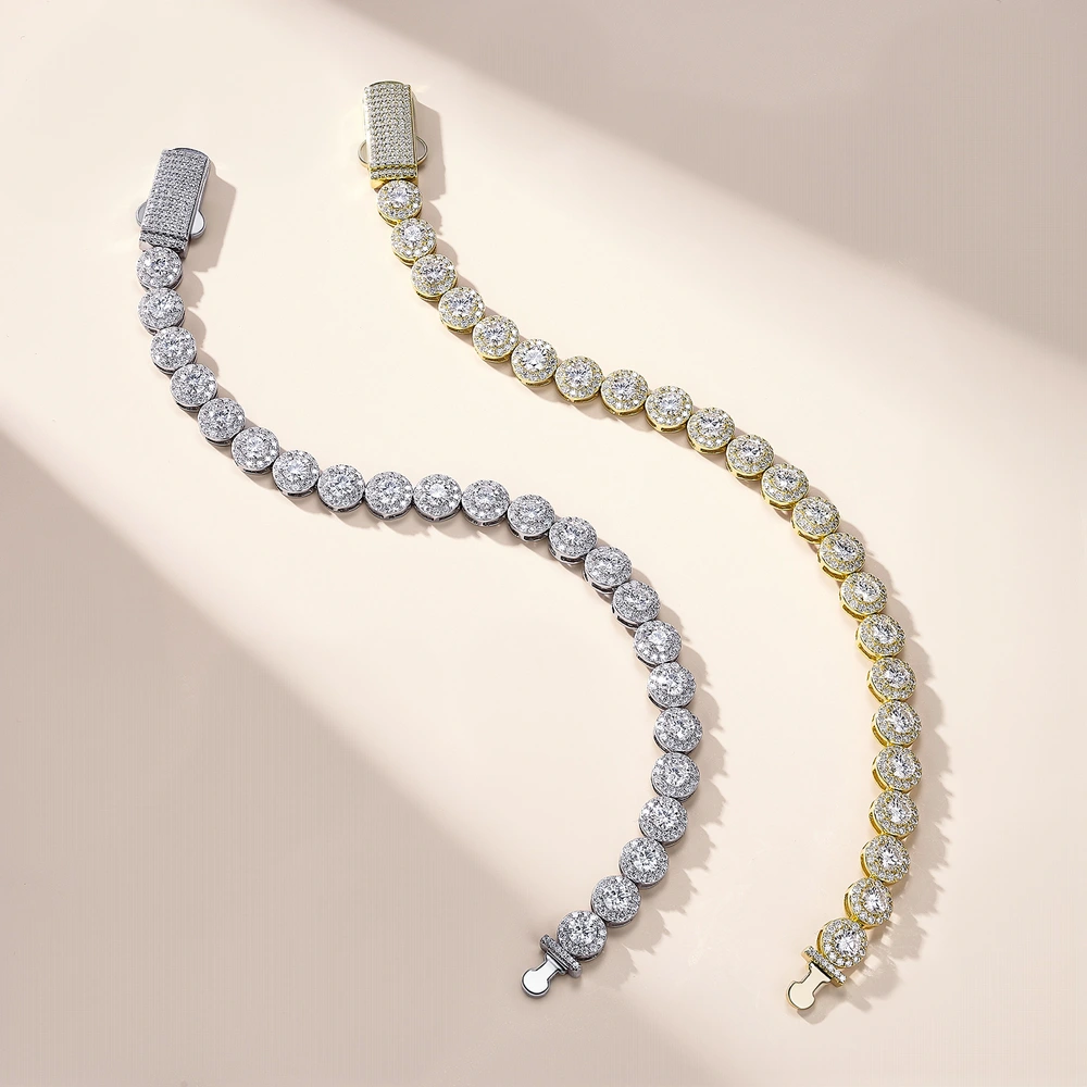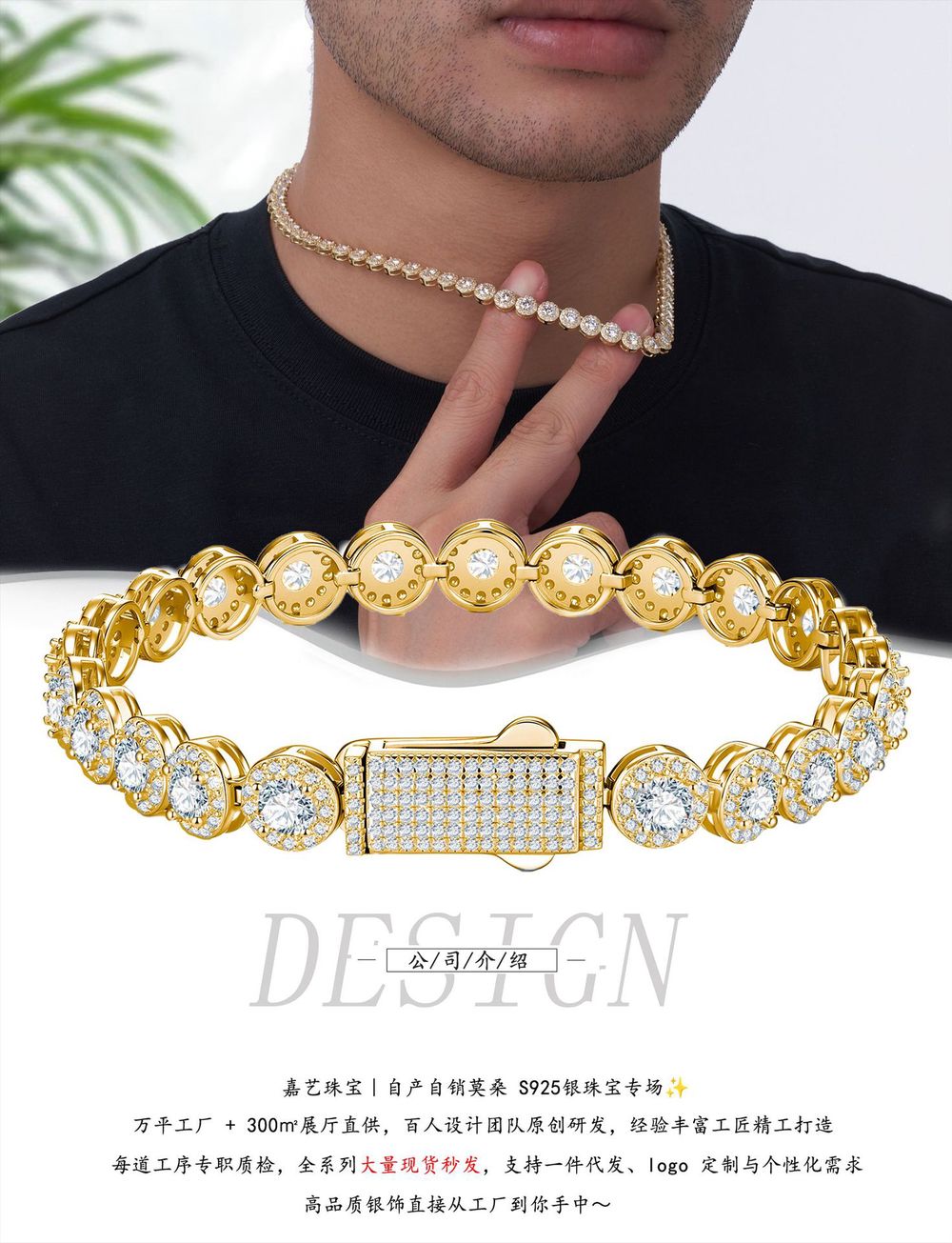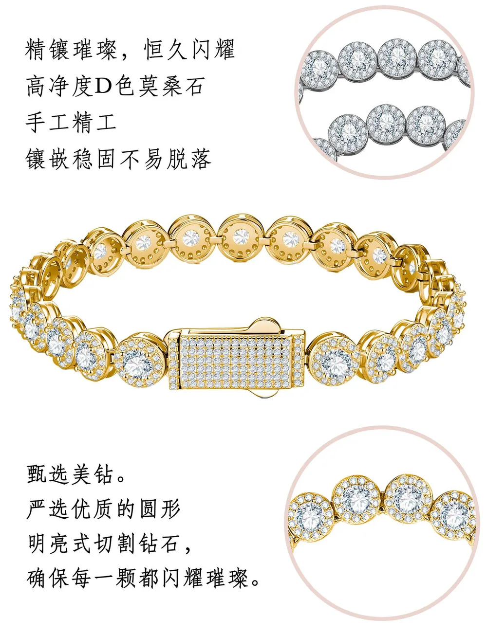 Wholesale 925 Silver Gold Plated Moissanite Cuban Link Bracelet, Iced Out Fully Paved Design, Tarnish Resistant Factory Direct Unisex Hip Hop Jewelry for Boutique Retail
