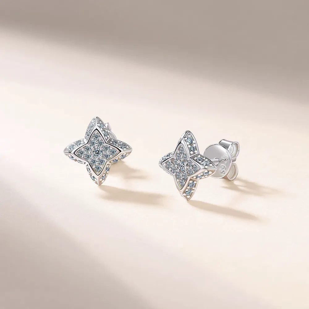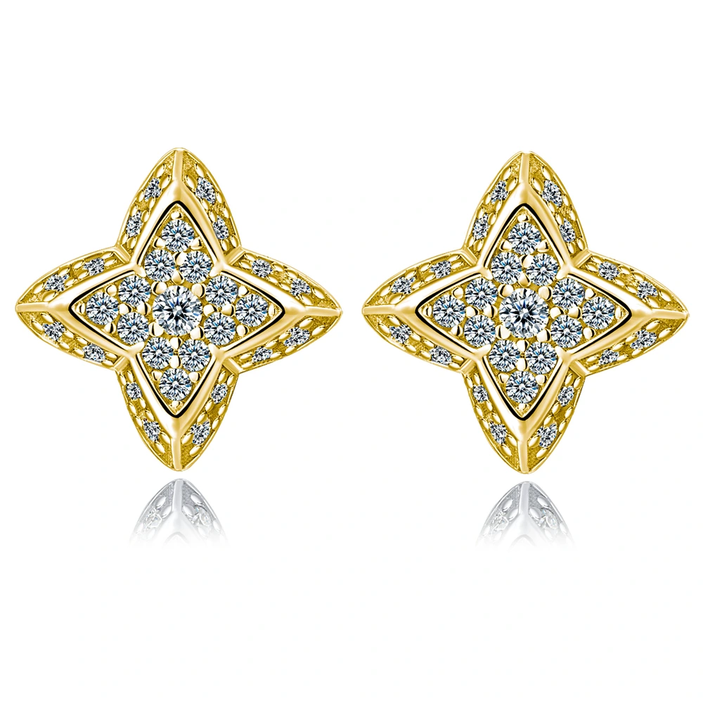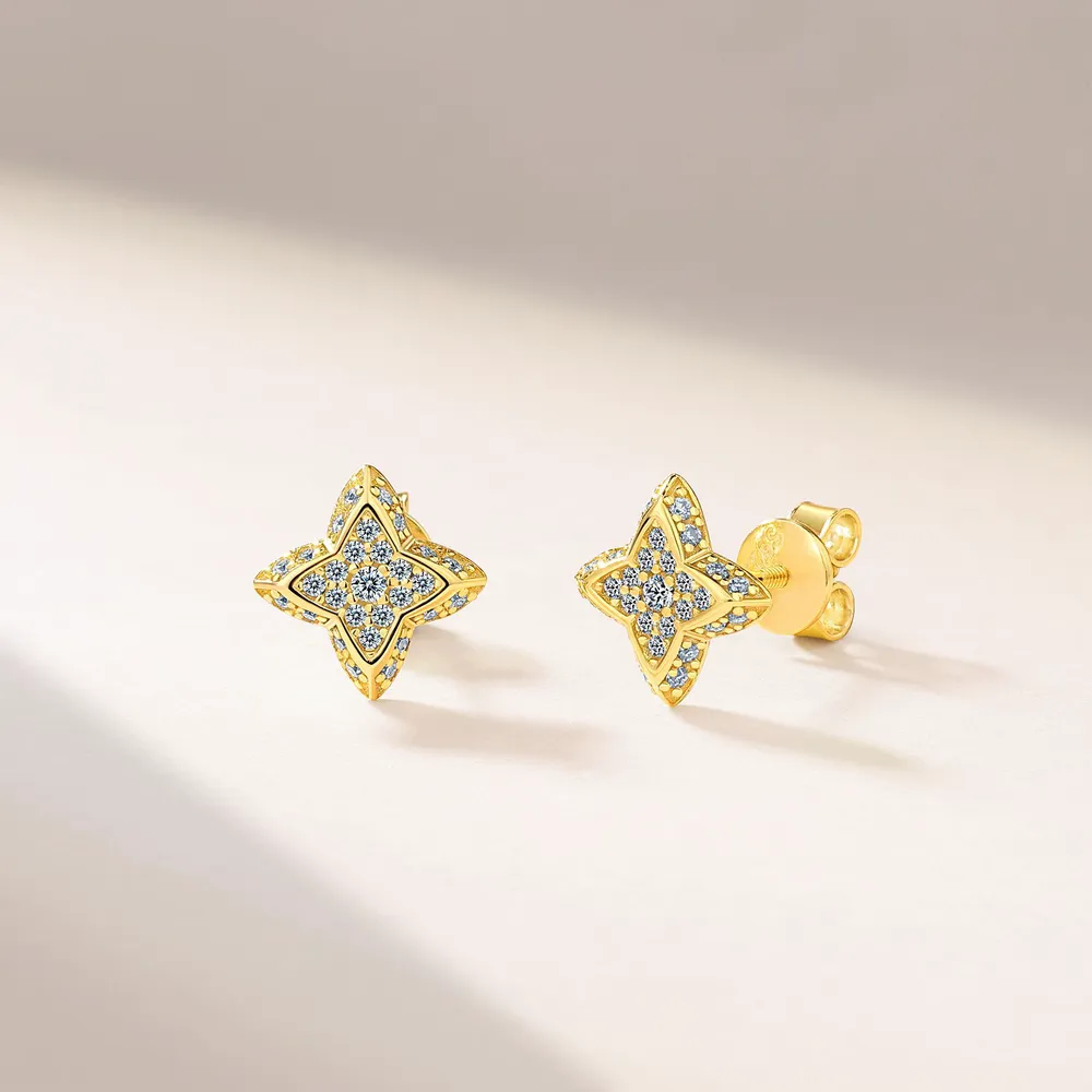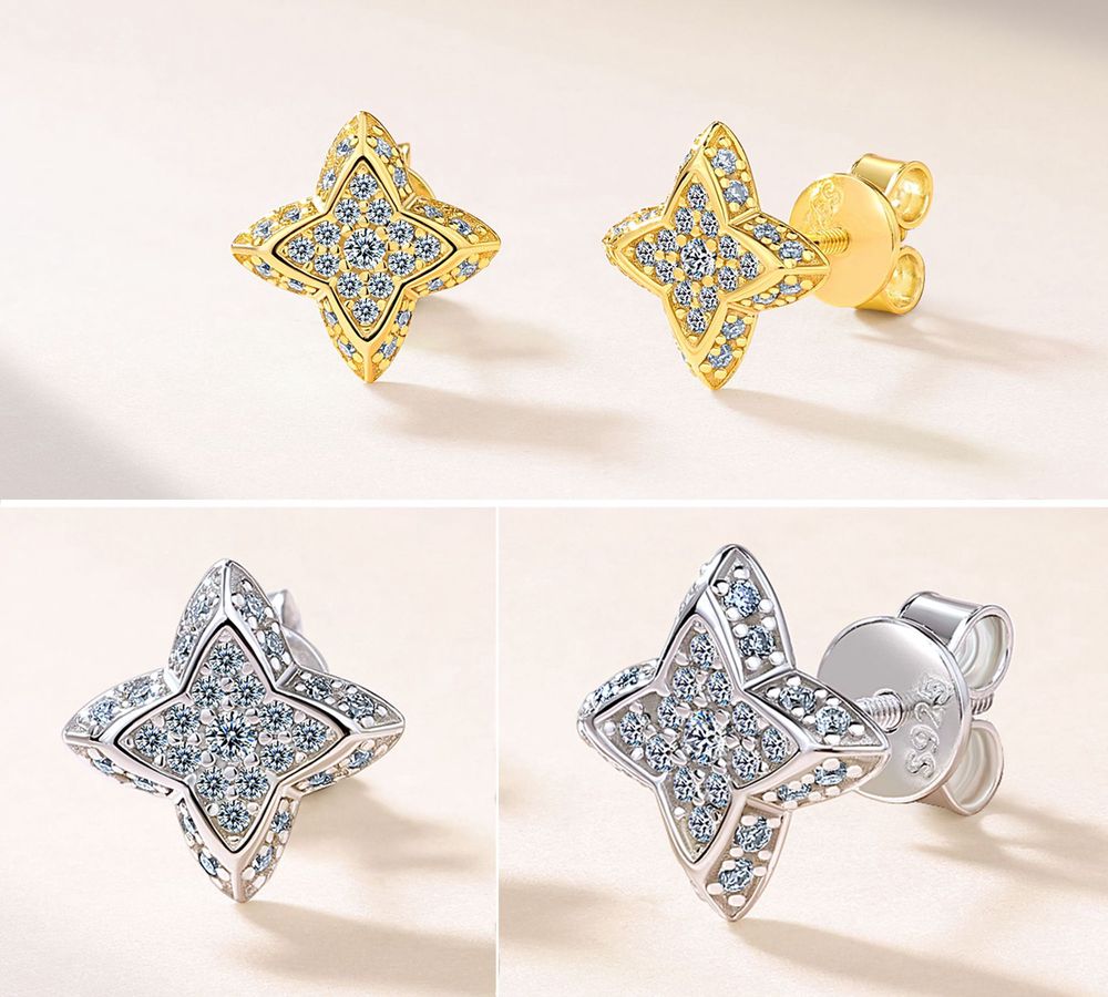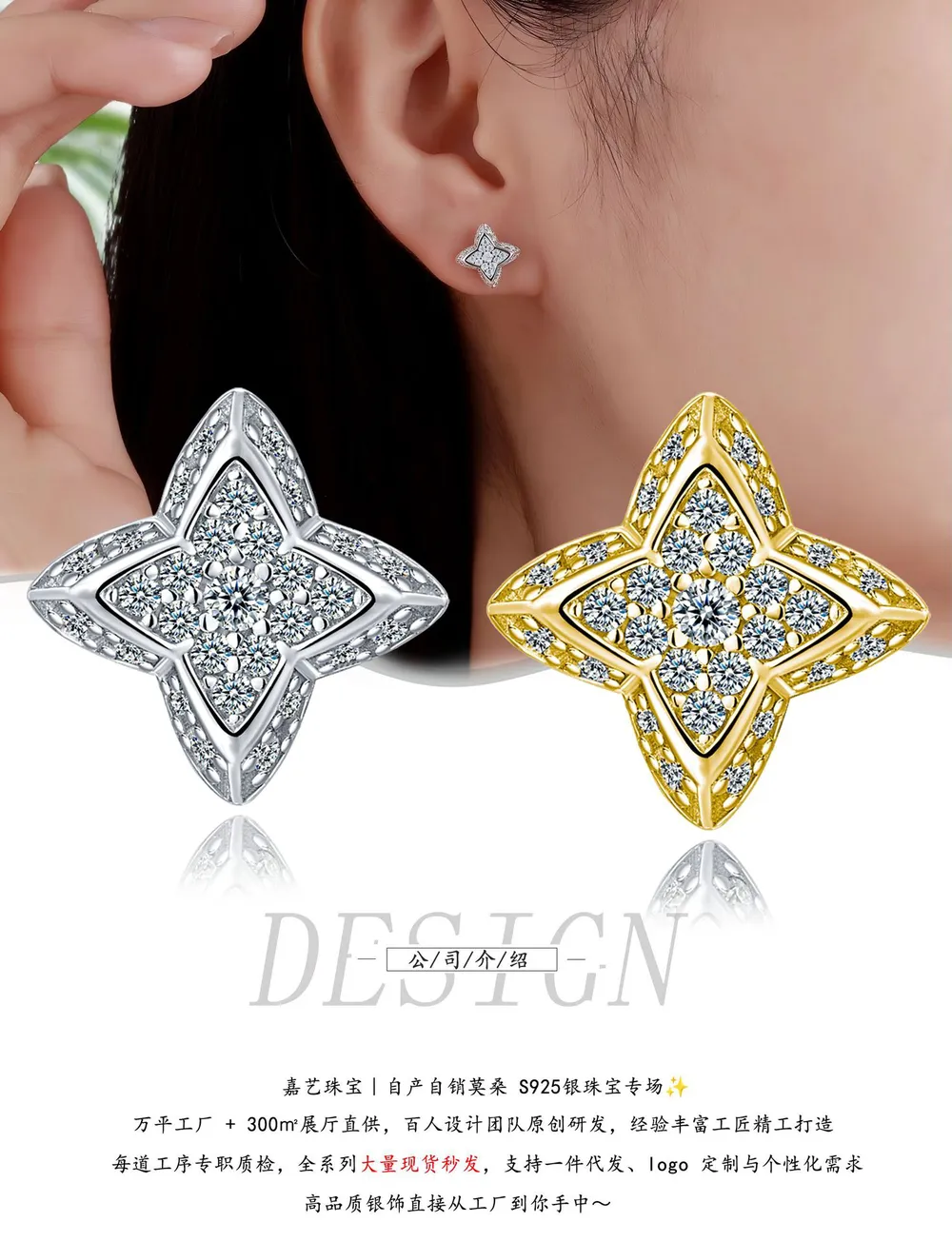 Wholesale 925 Silver Gold Plated Moissanite Stud Earrings, Bold Statement Unisex Design, Factory Direct Trending This Season New Arrival In Stock Jewelry for Streetwear Retail