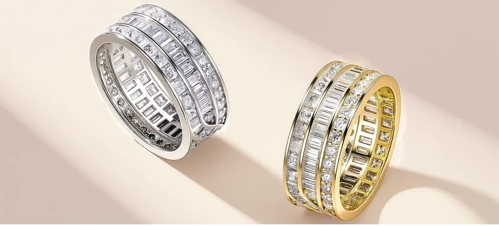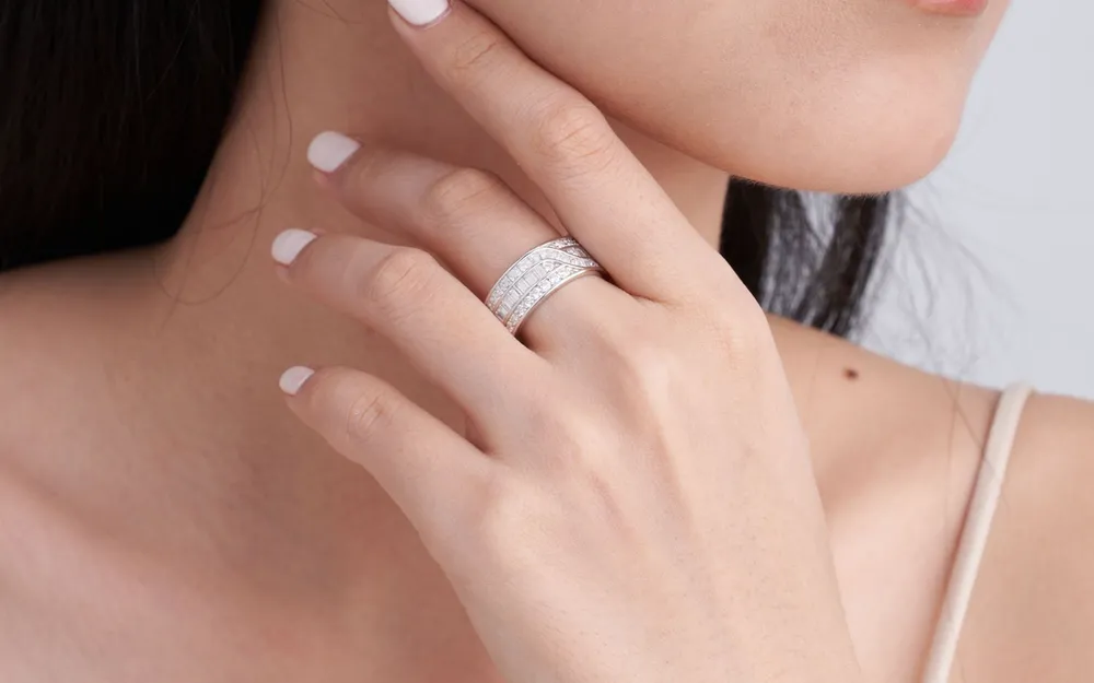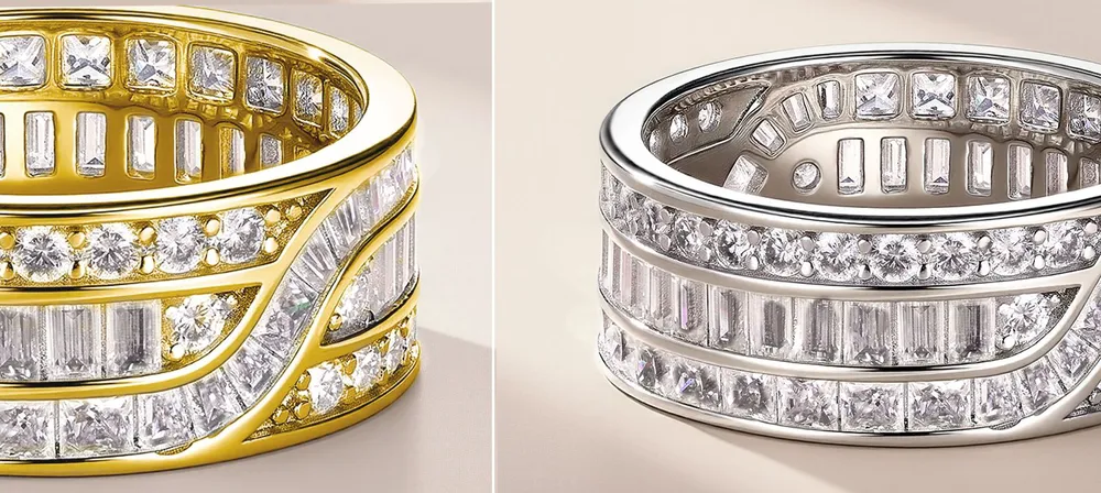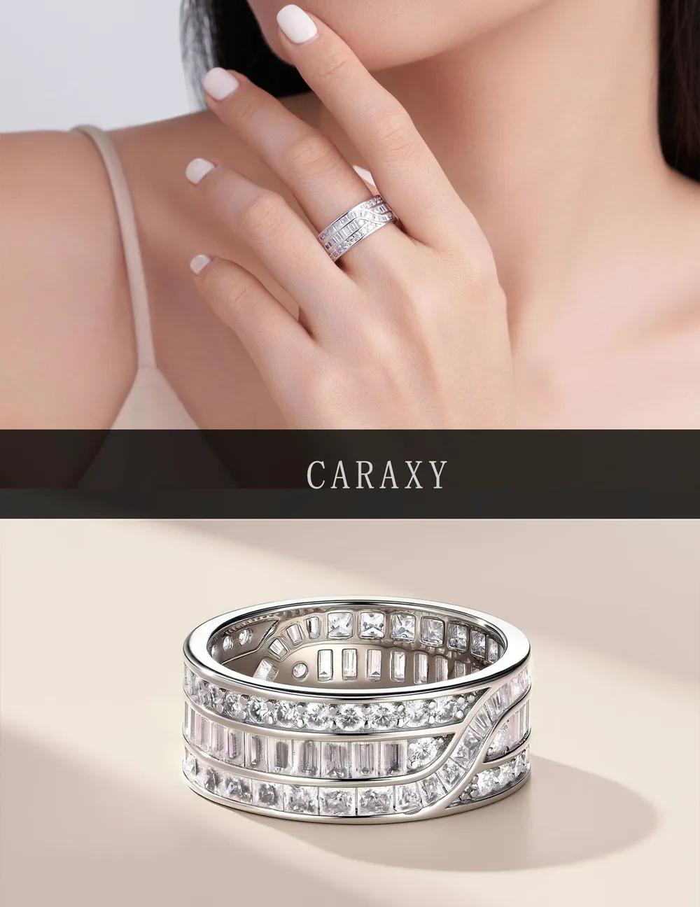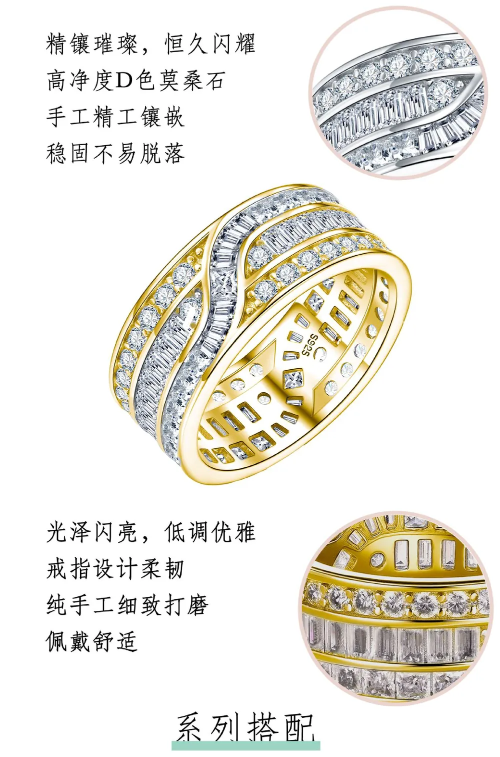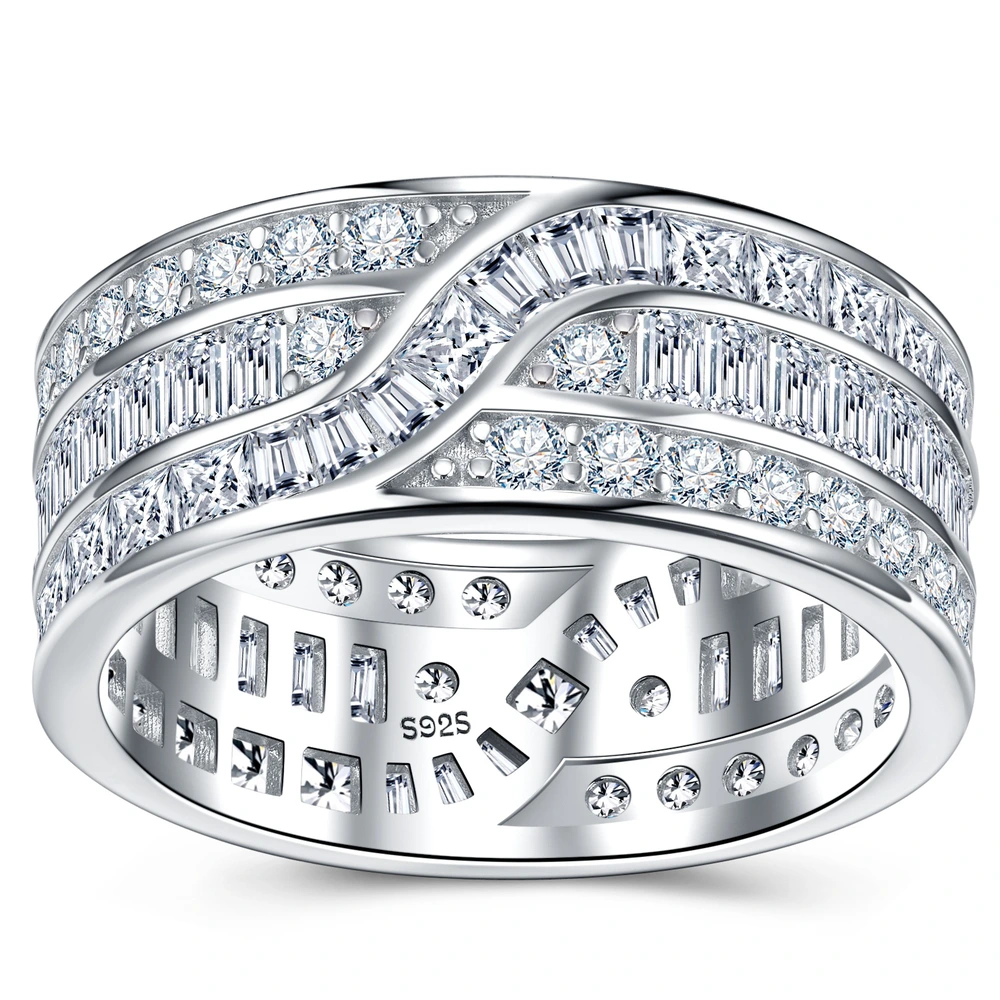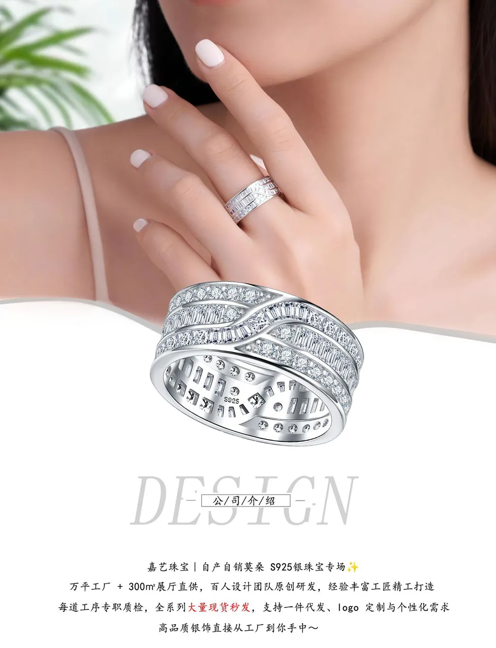 Wholesale 925 Silver Multi-Row Rectangular Moissanite Ring, Stackable Layered Square Cut Design, Factory Direct Hip Hop Iced Out Street Jewelry for Boutique Retail
