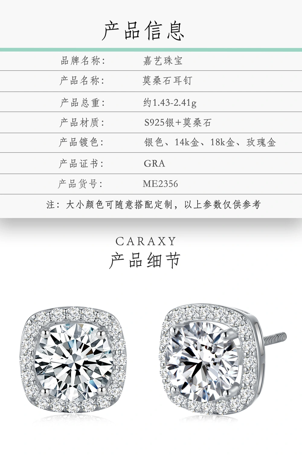 Carat: 1.2/1.94/2.8CTW