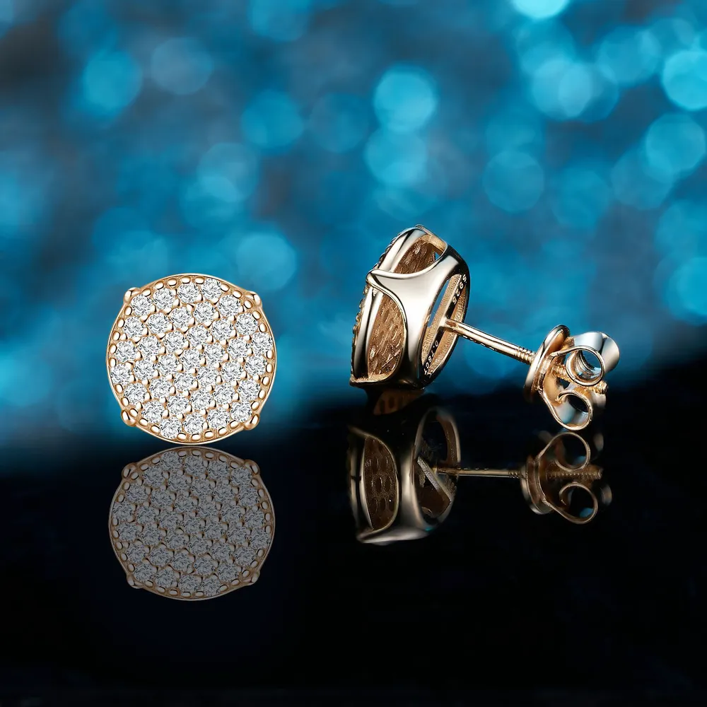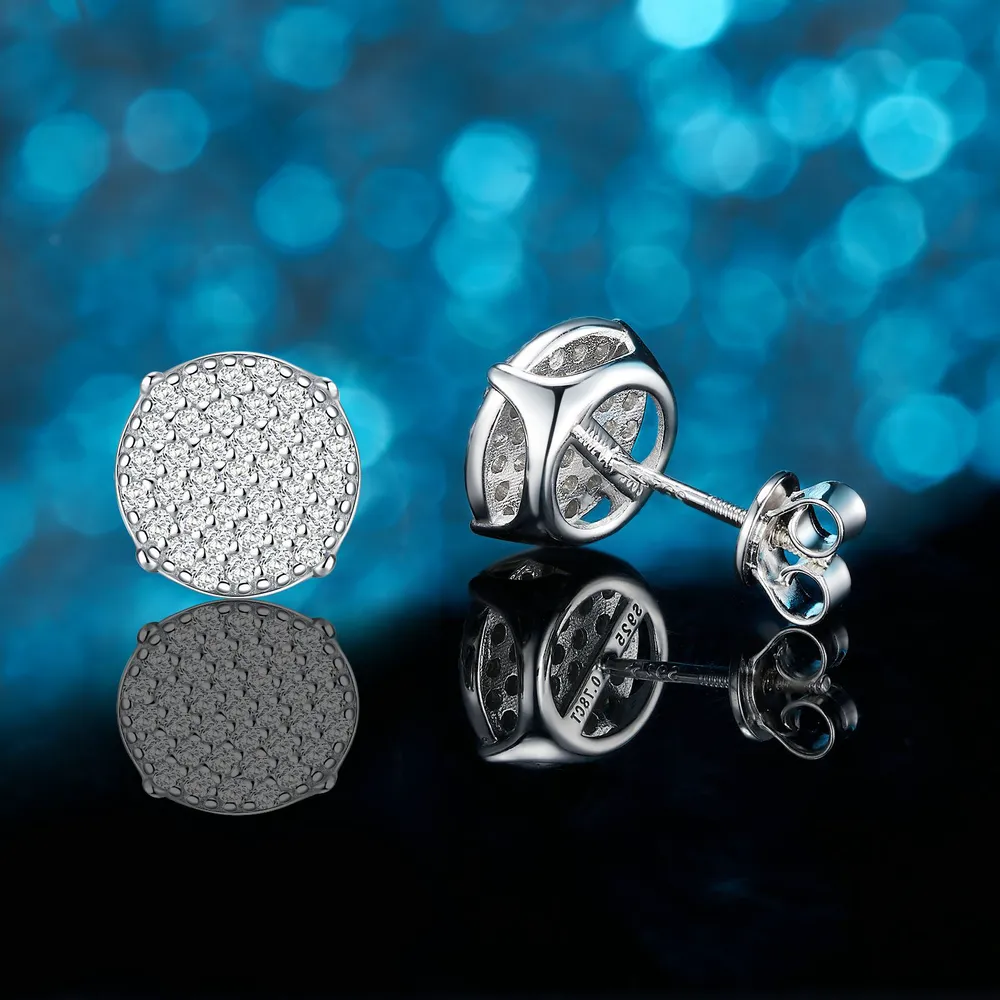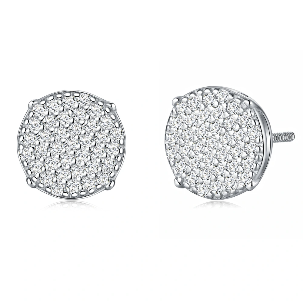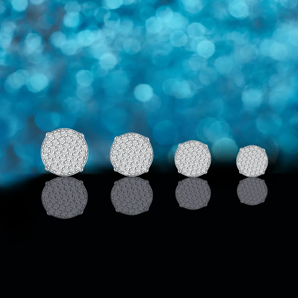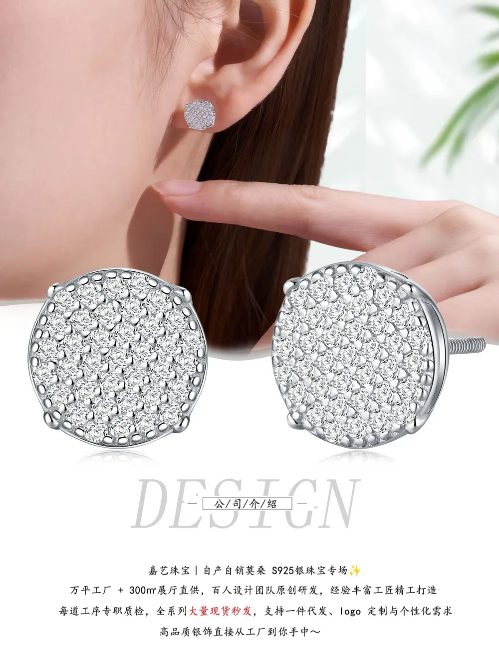 Wholesale 925 Silver Round Cut Moissanite Stud Earrings, Iced Out Fully Paved Hip Hop Design, Factory Direct Trending Unisex Jewelry for Streetwear Retail