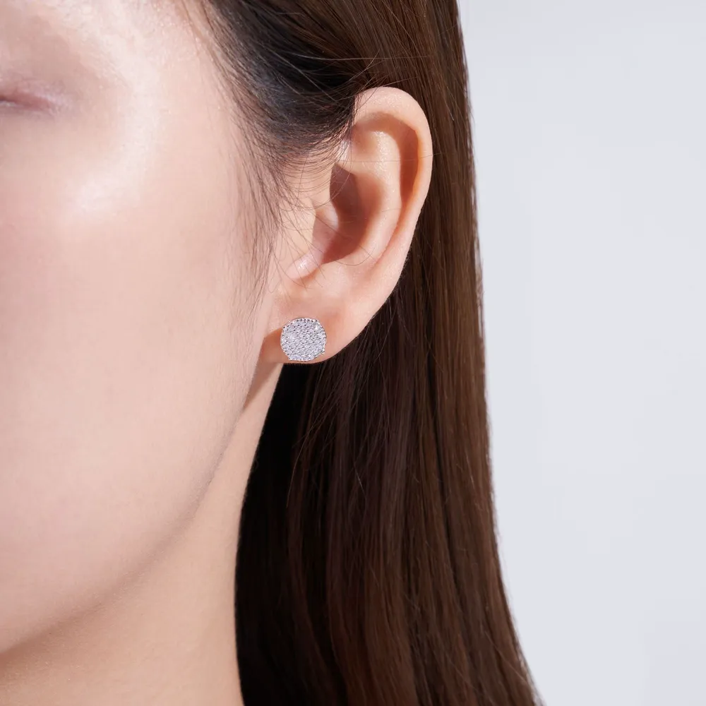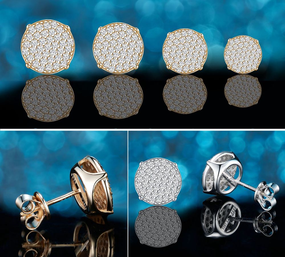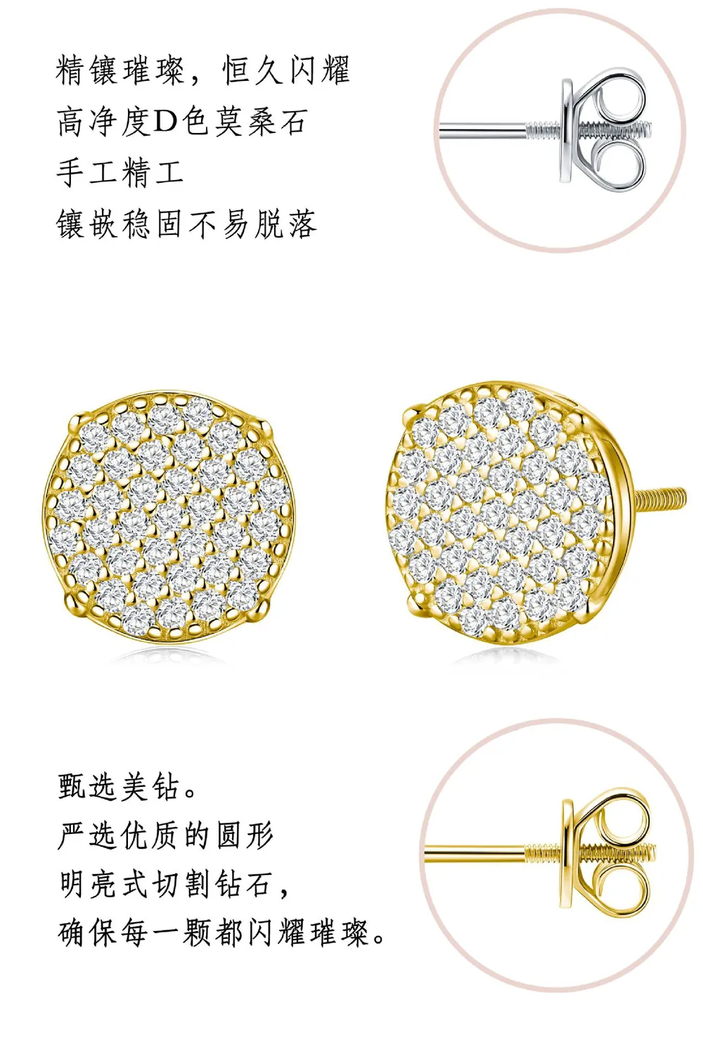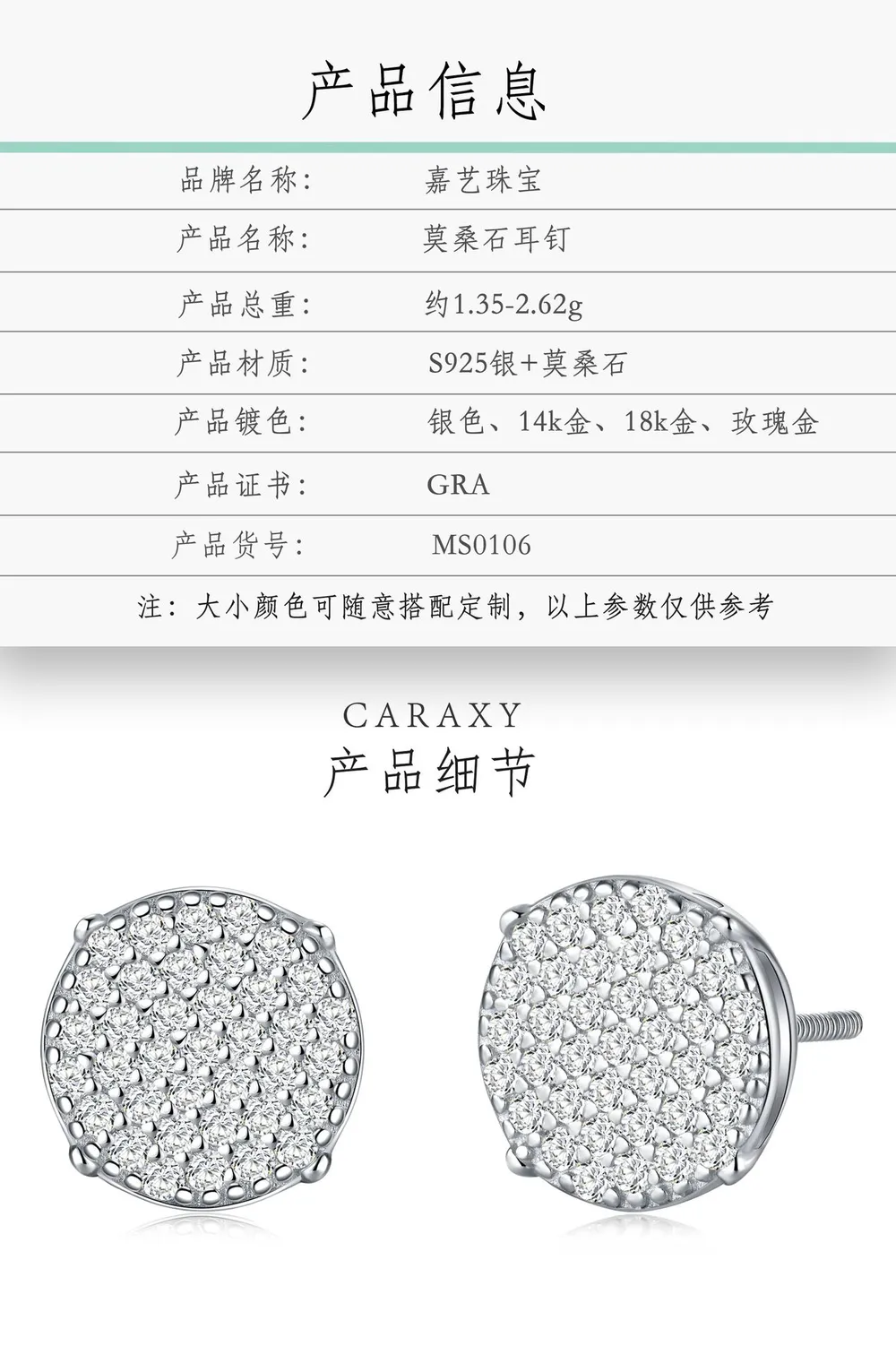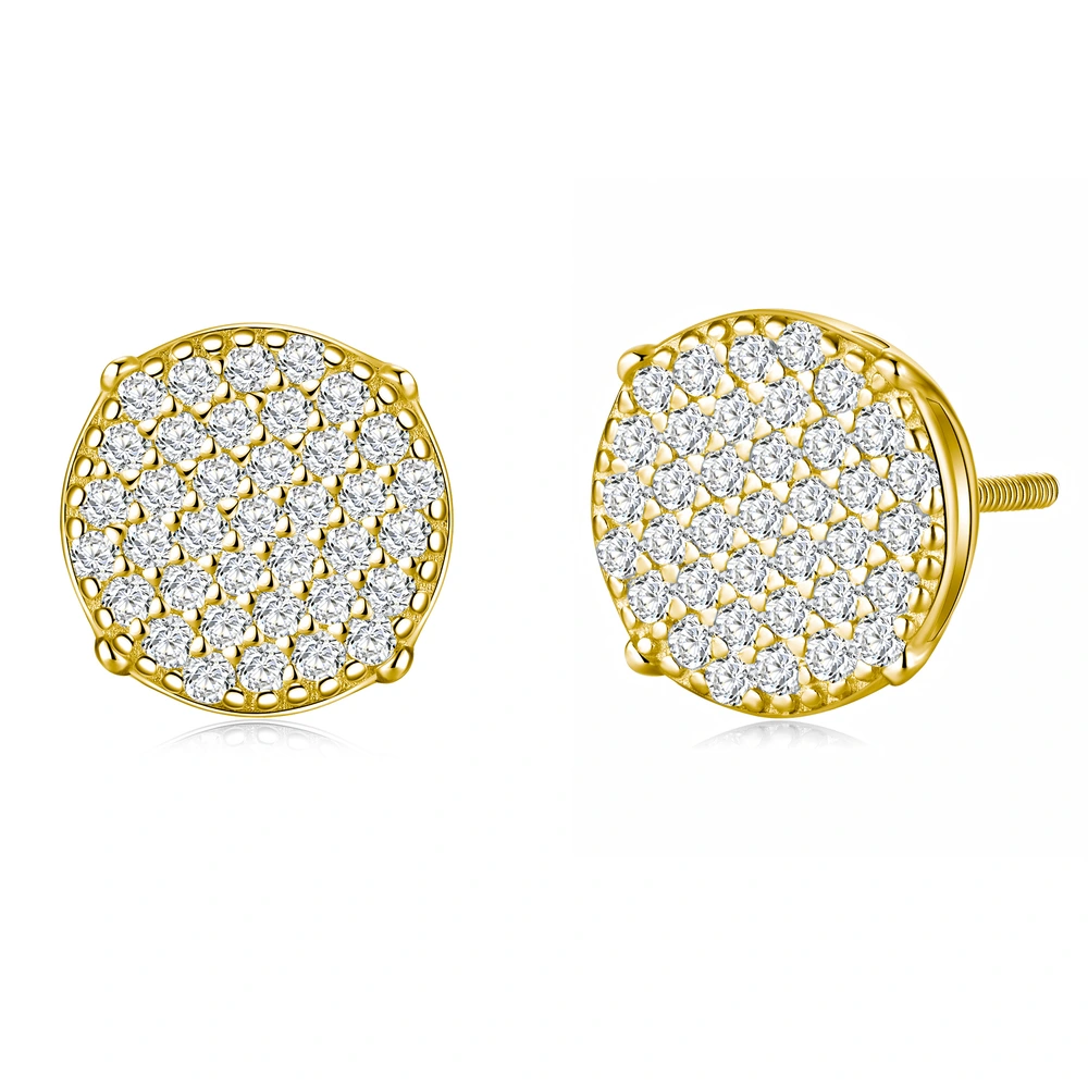 Wholesale 925 Silver Round Cut Moissanite Stud Earrings, Iced Out Fully Paved Hip Hop Design, Factory Direct Trending Unisex Jewelry for Streetwear Retail